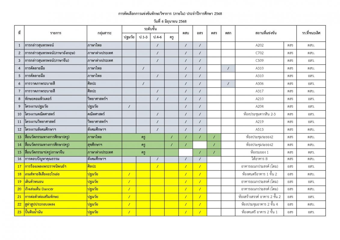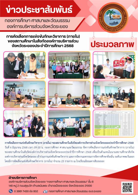 การคัดเลือกการแข่งขันทักษะวิชาการ (ภายใน) ของสถานศึกษาในสังกัดองค์การบริหารส่วนจังหวัดระยองประจำปีการศึกษา 2568