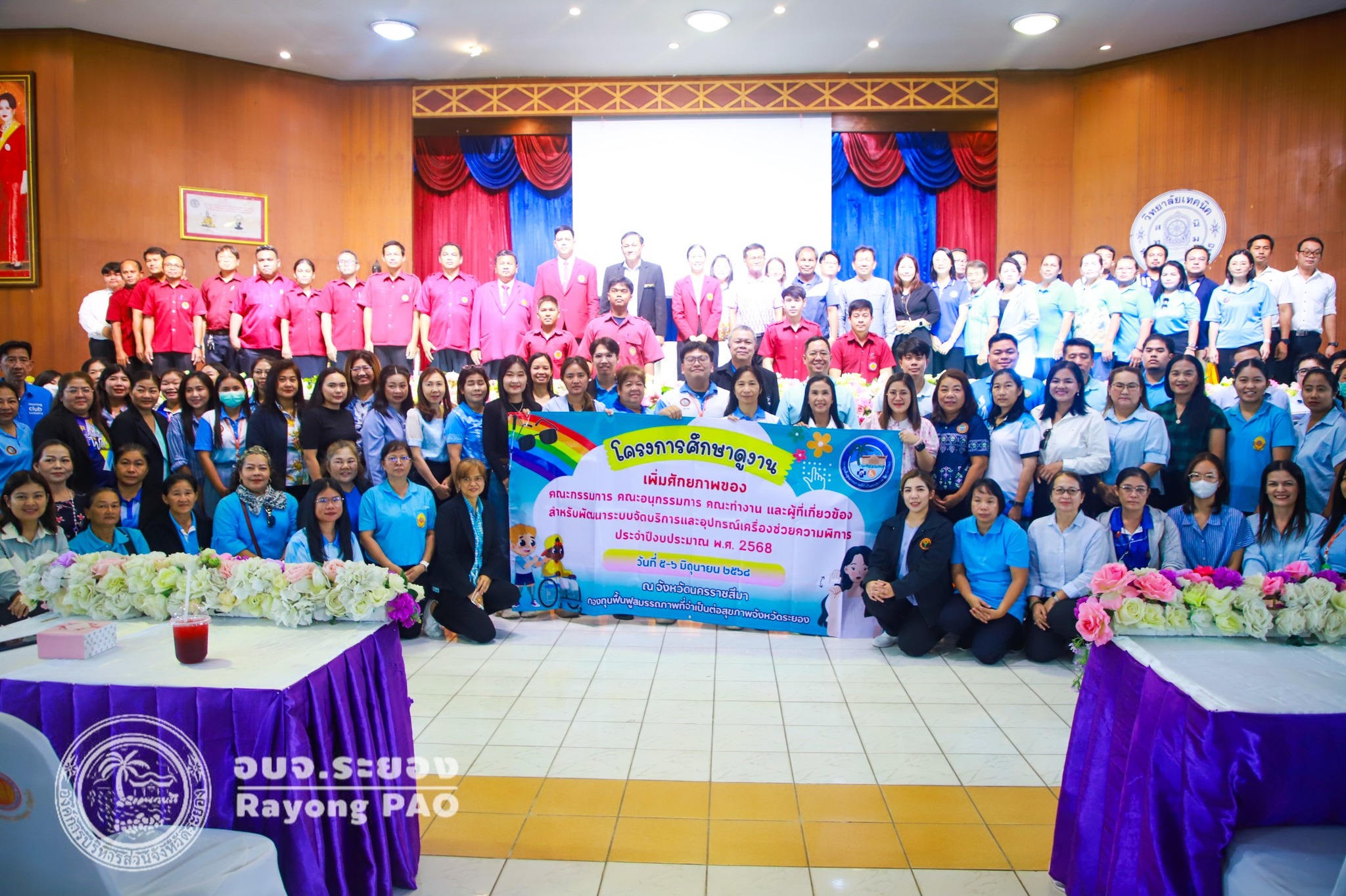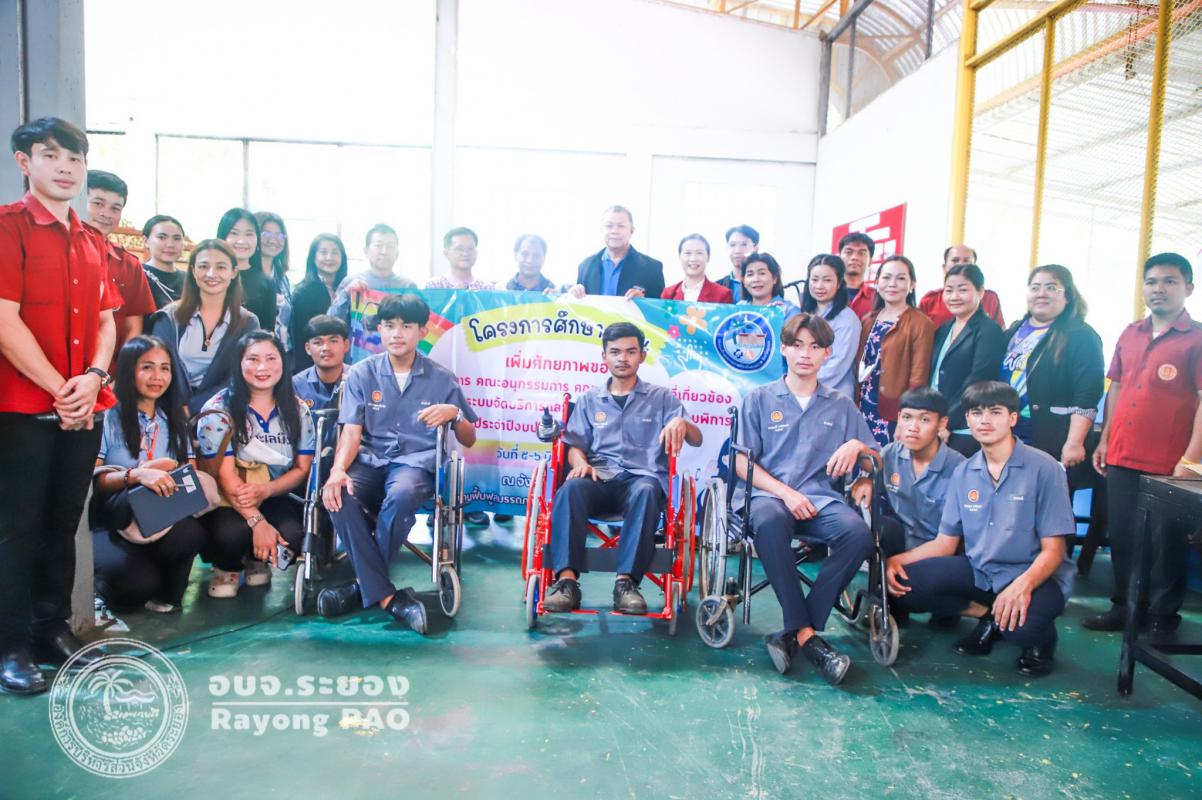 วันที่ 6 มิถุนายน 2568 นพ.สุนทร เหรียญภูมิการกิจ ผู้เชี่ยวชาญด้านงานสาธารณสุข อบจ.ระยอง พร้อมด้วย นายสุริยัน สกุลศิริไพบูลย์ ผจก.กลุ่มภารกิจ หลักประกันสุขภาพแห่งชาติ เขต 6 ระยอง คณะกรรมการ คณะอนุกรรมการ คณะทำงาน ตัวแทนหน่วยบริการ ตัวแทนองค์กรปกครองส่วนท้องถิ่น ตัวแทนคนพิการ ภาคีเครือข่าย และผู้เกี่ยวข้อง จำนวน 150 คน เข้าศึกษาดูงาน ณ จังหวัดนครราชสีมา ฟังบรรยาย เรื่อง การบูรณาการขับเคลื่อนงานศูนย์ซ่อมอุปกรณ์เครื่องช่วยความพิการในชุมชนของวิทยาลัยเทคนิคหลวงพ่อคูณ ปริสุทโธ และเยี่ยมชม การบูรณาการศูนย์ซ่อมอุปกรณ์เครื่องช่วยความพิการในชุมชนของวิทยาลัยเทคนิคหลวงพ่อคูณ ปริสุทโธ ศูนย์ซ่อมดังกล่าวได้ดำเนินการเปลี่ยนชิ้นส่วนอุปกรณ์เครือข่ายสำหรับคนพิการ เช่น ซ่อมรถวิลแชร์ รถสามล้อโยก วอกเกอร์ ไม้ค้ำยัน เตียงผู้ป่วย หรืออุปกรณ์อื่นที่จำเป็นสำหรับคนพิการไปยังพื้นที่ต่างอำเภอ ตลอดจนเป็นสถานที่ฝึกประสบการณ์และทักษะในการช่อมอุปกรณ์คนพิการให้กับนักเรียน นักศึกษา โดยมุ่งเน้นให้คนพิการ ผู้สูงอายุ ผู้ป่วยระยะกลาง