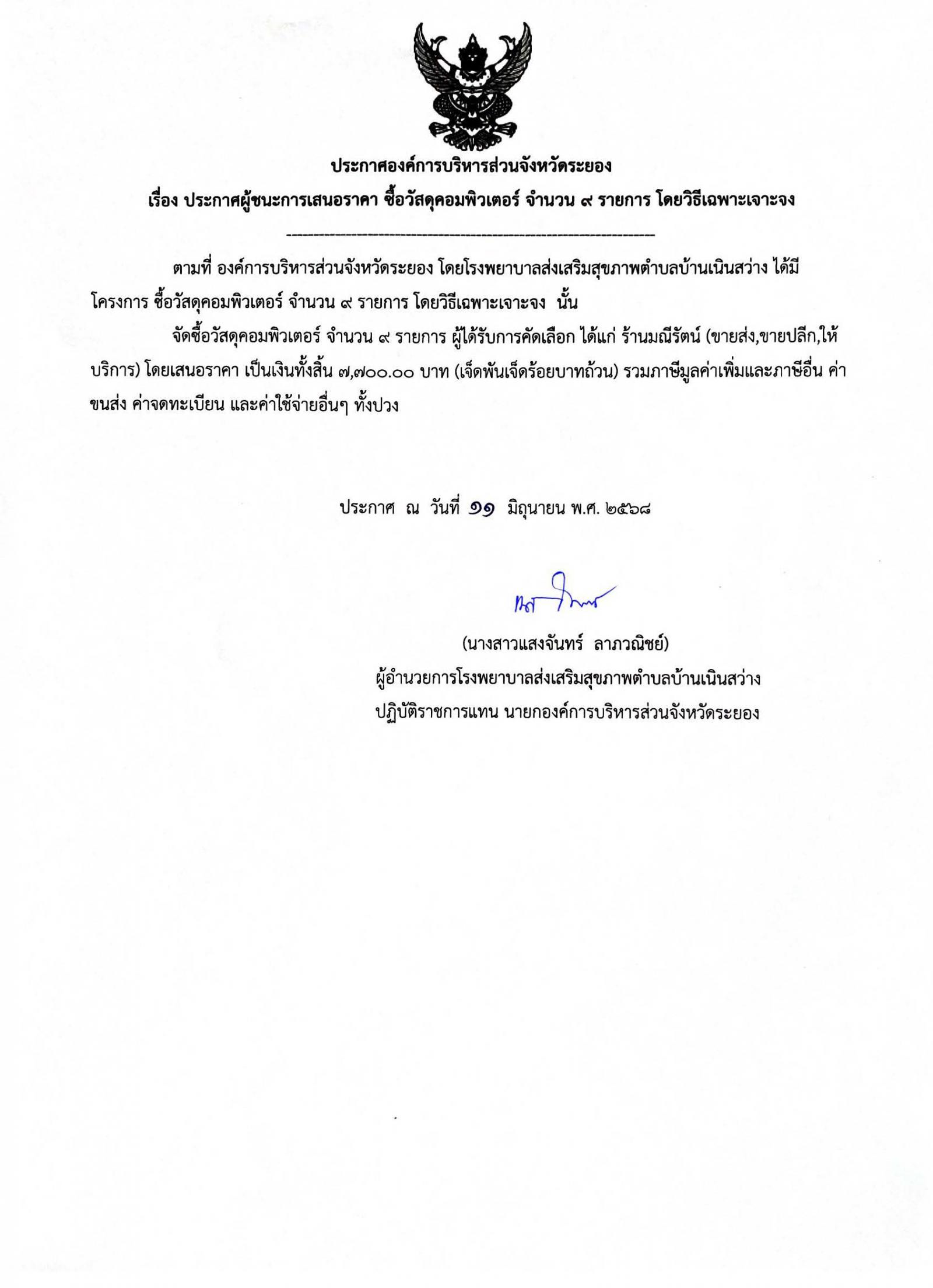 📌ประกาศผู้ชนะการเสนอราีคา จ้างเหมาจัดทำทำเนียบองค์การบริหารส่วนจัหวัดระยอง