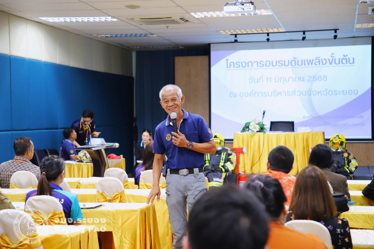 วันที่ 11 มิถุนายน 2568 เวลา 08.30 น. นายกิตติ เกียรติ์มนตรี รองนายกองค์การบริหารส่วนจังหวัดระยอง (1) เป็นประธานโครงการอบรมดับเพลิงขั้นต้น ประจำปี 2568 พร้อมด้วยนายสมบัติ มุมทอง รองปลัดองค์การบริหารส่วนจังหวัดระยอง (1), นายเตชิต วัชรเมธาพงษ์ รองปลัดองค์การบริหารส่วนจังหวัดระยอง (2), นางณมน พุ่มพฤกษี ผู้อำนวยการกองการเจ้าหน้าที่, นางสาวจินตนา สนอง หัวหน้าสำนักปลัดองค์การบริหารส่วนจังหวัดระยอง คณะผู้บริหาร หัวหน้าส่วนราชการ และเจ้าหน้าที่ที่เกี่ยวข้องเข้าร่วมพิธีเปิดโครงการอบรมอย่างพร้อมเพรียงกัน ณ ห้องประชุม 1 ชั้น 3 อบจ.ระยอง