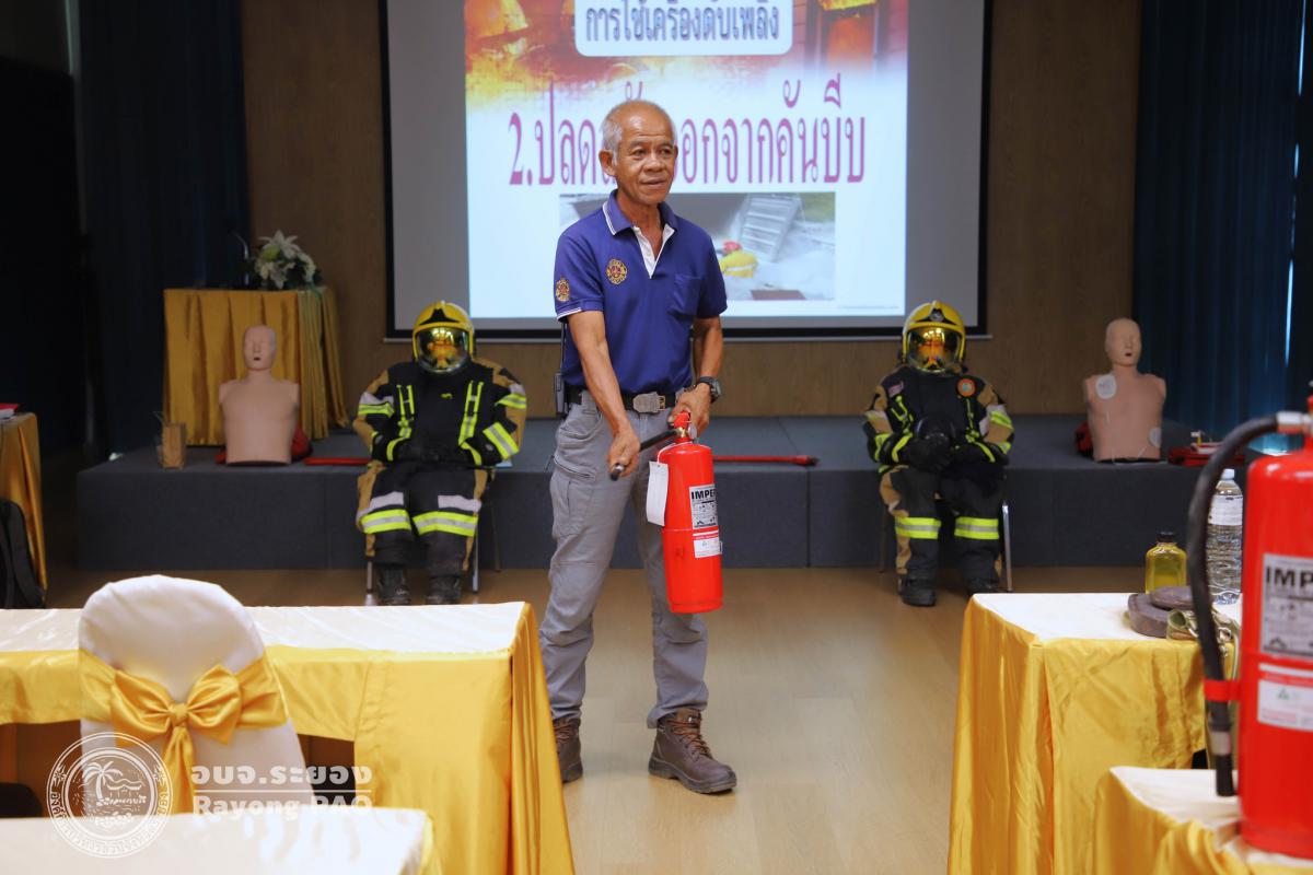 องค์การบริหารส่วนจังหวัดระยองได้จัดโครงการอบรมดับเพลิงขั้นต้นให้กับเจ้าหน้าที่ขององค์การบริหารส่วนจังหวัดระยอง เพื่อให้มีความรู้มีความสามารถในการระงับเหตุเบื้องต้น สามารถนำไปถ่ายทอดให้แก่บุคคลอื่น รวมถึงคนในครอบครัวและชุมชน สามารถเป็นผู้นำในการอพยพหนีไฟได้อย่างปลอดภัย โดยมีผู้เข้าร่วมโครงการจำนวน 100 คน