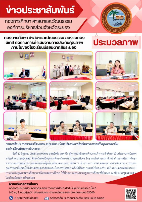 กองการศึกษา ศาสนาและวัฒนธรรม อบจ.ระยอง นิเทศ ติดตามการดำเนินงานการประกันคุณภาพภายในของโรงเรียนมัธยมตากสินระยอง