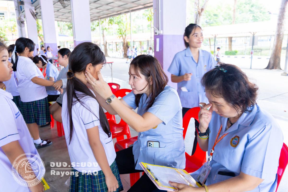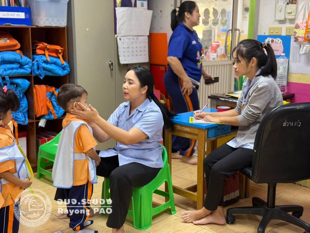 ฝ่ายส่งเสริมสาธารณสุข กองสาธารณสุข ได้จัดกิจกรรมตรวจสุขภาพนักเรียนประจำปีการศึกษา 2568 ให้กับนักเรียนโรงเรียนอนุบาลนานาชาติตากสินบ้านค่าย (วัดหวายกรอง) ระหว่างวันที่ 9-13 มิถุนายน 2568 ณ อาคารปิยนุสรณ์ โรงเรียนอนุบาลนานาชาติตากสินบ้านค่าย (วัดหวายกรอง) โดยได้รับความร่วมมือจาก