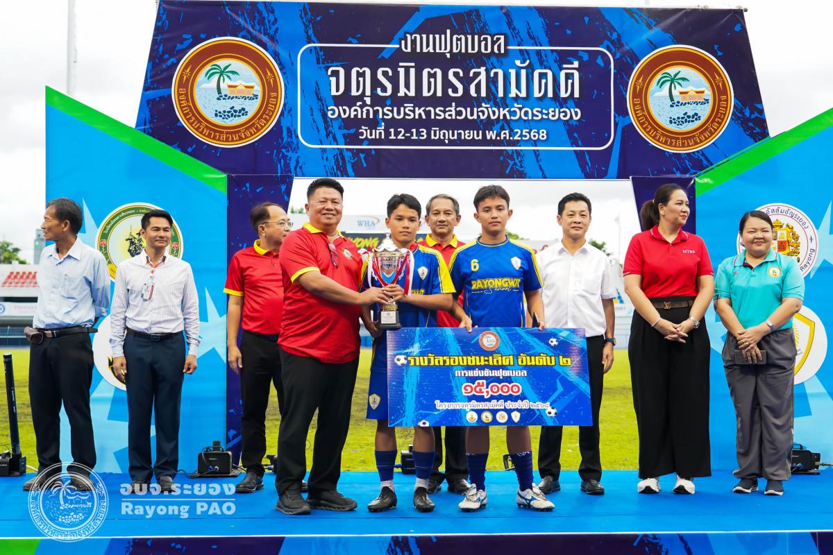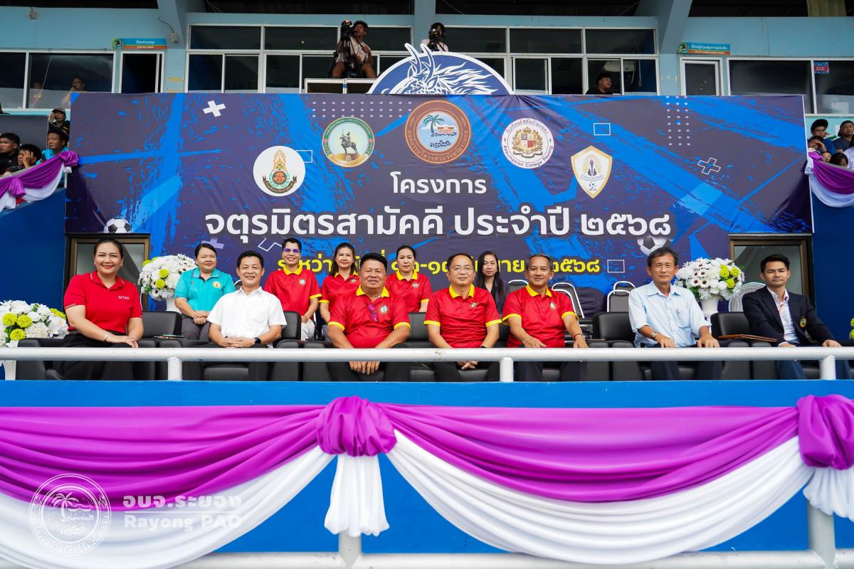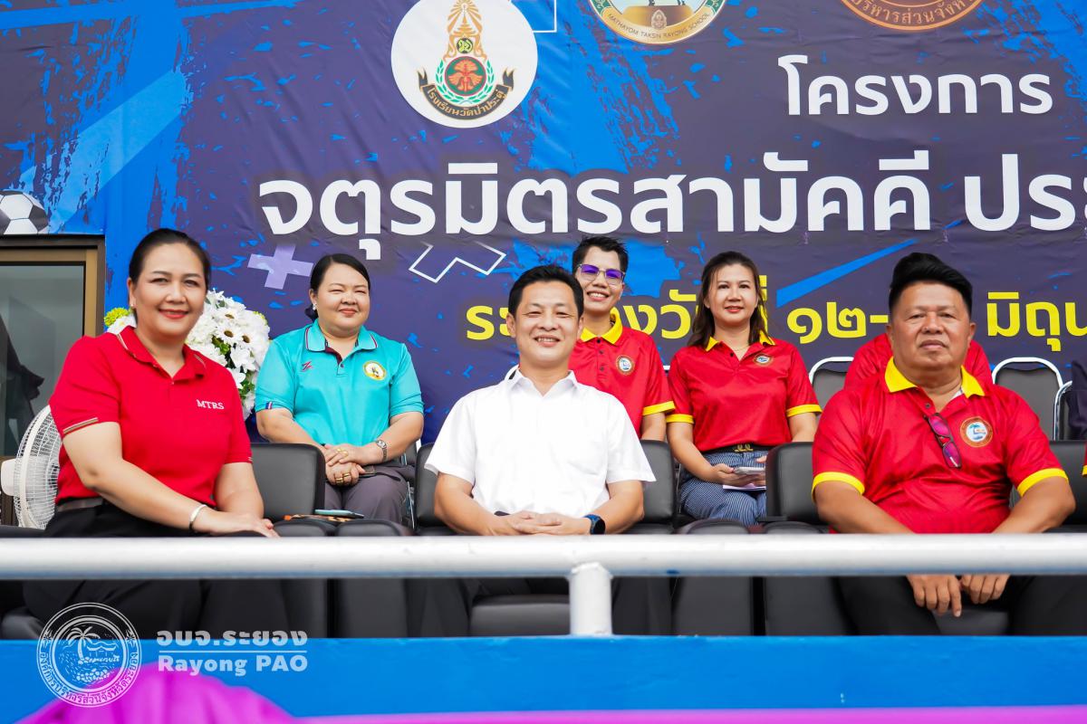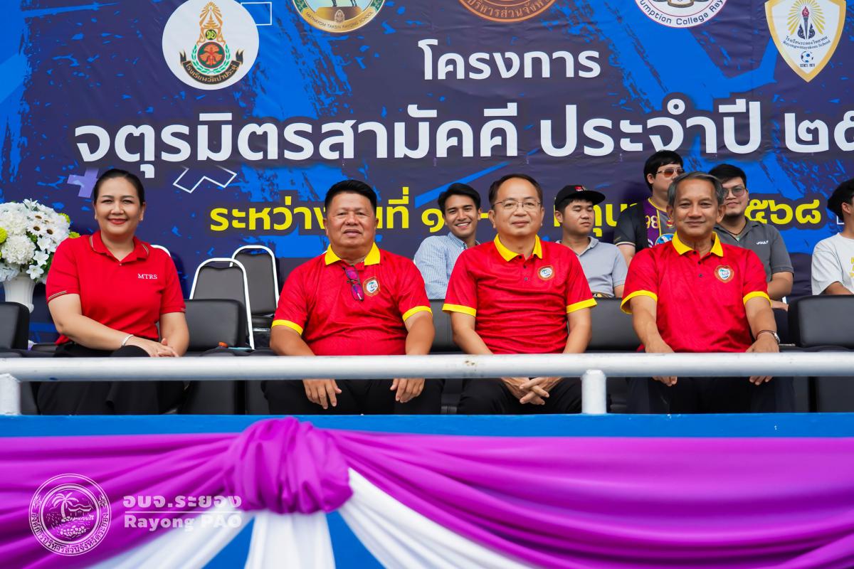 วันที่ 13 มิถุนายน 2568 เวลา 18.30 น. นายประสานต์ พฤกษาชาติ รองนายกองค์การบริหารส่วนจังหวัดระยอง (2) ให้เกียรติเป็นประธานในพิธีปิดการแข่งขันกีฬาโครงการจตุรมิตรสามัคคี พร้อมด้วย นายกิตติ เกียรติ์มนตรี รองนายกองค์การบริหารส่วนจังหวัดระยอง (1), นายสุรินทร์ แสงทอง ปลัดองค์การบริหารส่วนจังหวัด, นายชนะ ปิตุเตชะ สมาชิกสภาฯ เขต 1 อำเภอบ้านค่าย, นายอดุลย์ นิยมสมาน สมาชิกสภาฯ เขต 2 อำเภอบ้านค่าย, นางสาววัชราภรณ์ สมพงษ์ผึ้ง ผู้อำนวยการสถานศึกษา โรงเรียนมัธยมตากสินระยอง โดยมีนายเตชิต วัชรเมธาพงษ์ รองปลัดองค์การบริหารส่วนจังหวัดระยอง (2) เป็นผู้กล่าวรายงานพิธีปิดการแข่งขันกีฬาโครงการจตุรมิตรสามัคคี โดยพร้อมเพรียงกัน ณ สนามกีฬากลางจังหวัดระยอง อำเภอเมืองระยอง จังหวัดระยอง