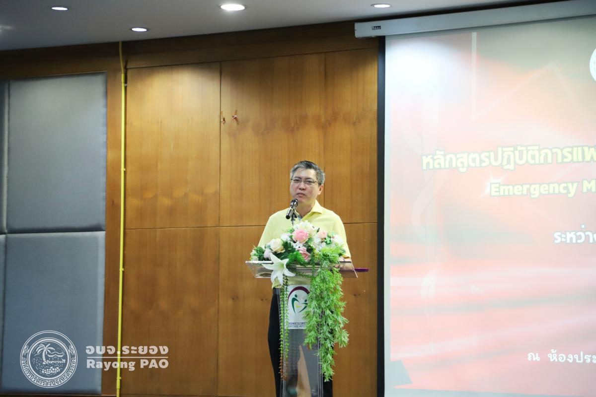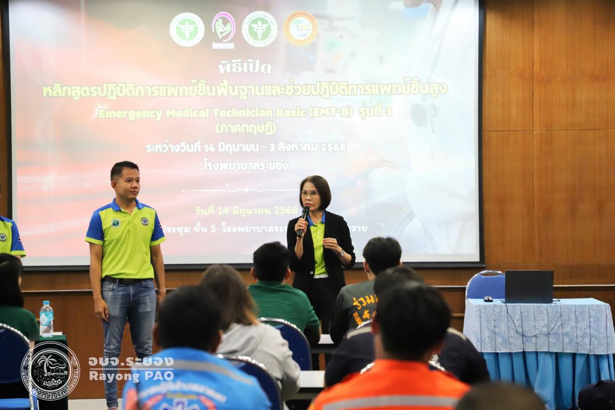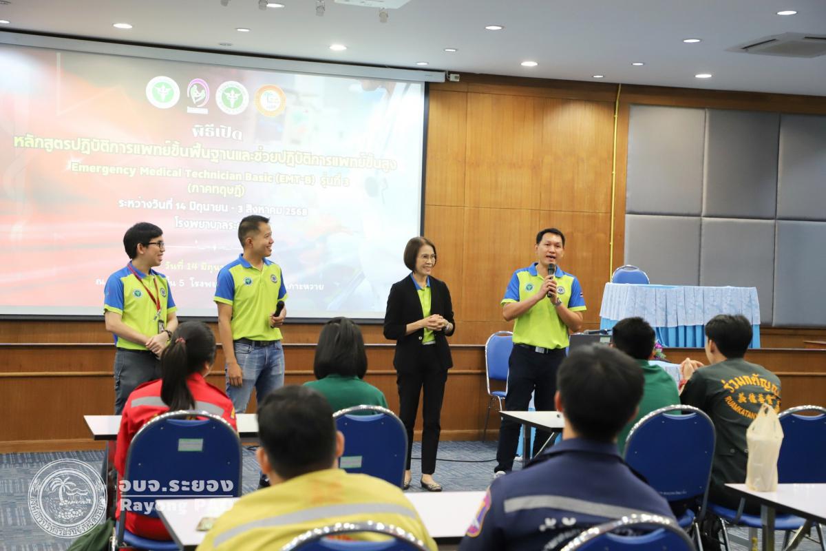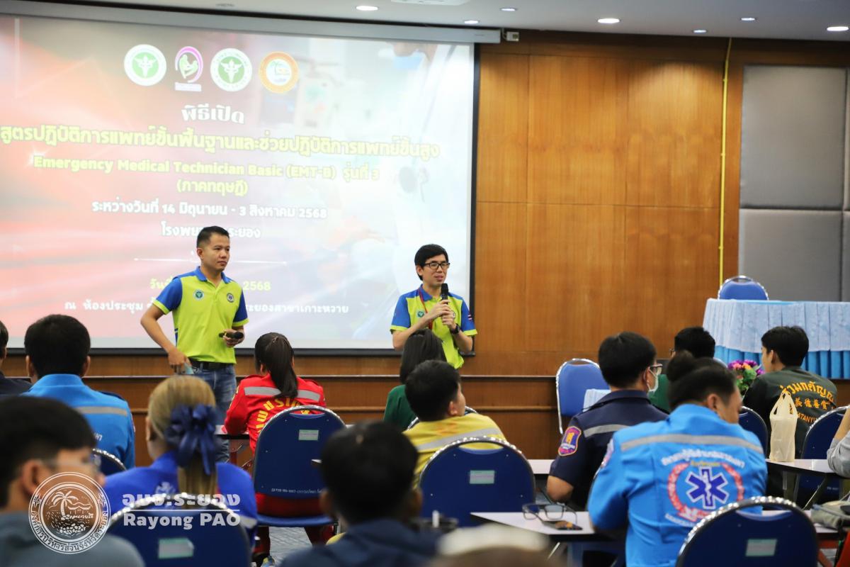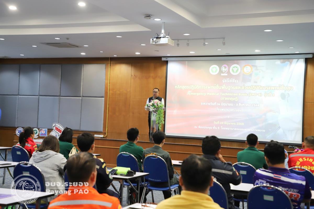 วันที่ 14 มิถุนายน 2568 เวลา 09.00 น. นายกิตติ เกียรติ์มนตรี รองนายกองค์การบริหารส่วนจังหวัดระยอง (1) เข้าร่วมพิธีเปิดการอบรมหลักสูตรปฏิบัติการแพทย์ขั้นพื้นฐานและช่วยปฏิบัติการแพทย์ขั้นสูง Emergency Medical Technician Basic (EMT-B) รุ่นที่ 3 (ภาคทฤษฎี) ได้รับเกียรติจาก นพ. ภูษิต ทรัพย์สมพล ผู้อำนวยการโรงพยาบาลระยอง เป็นประธานในพิธีเปิดฯ โดยมี นพ. ภัคพล เอี่ยมไพบูลย์พันธ์ เป็นผู้กล่าวรายงาน พร้อมด้วย นายไพฑูรย์ รัตนพรวารีสกุล สมาชิกสภา เขต 6 อำเภอเมืองระยอง และเจ้าหน้าที่ที่เกี่ยวข้องเข้าร่วมพิธีเปิดอย่างพร้อมเพรียง ซึ่งโครงการนี้จัดขึ้นเพื่อให้ผู้ที่ปฏิบัติงานการแพทย์ฉุกเฉินมีทักษะ ความรู้ ความสามารถ ช่วยกันปฏิบัติงานการแพทย์ขั้นพื้นฐานและช่วยปฏิบัติงานการแพทย์ขั้นสูง จึงได้จัดการเรียนการสอนภาคทฤษฎี จากสถาบัน ดังนี้ โรงพยาบาลระยอง โรงพยาบาลแกลง โรงพยาบาลเฉลิมพระเกียรติสมเด็จพระเทพรัตนราชสุดาฯ สยามบรมราชกุมารีระยอง และศูนย์รับแจ้งเหตุและจ่ายงานการแพทย์ฉุกเฉิน 1669 องค์การบริหารส่วนจังหวัดระยอง การอบรมครั้งนี้จัดขึ้นระหว่างวันที่ 14 มิถุนายน - 3 สิงหาคม 2568 ณ ห้องประชุมเกาะหวาย ชั้น 5 โรงพยาบาลระยองสาขาเกาะหวาย
