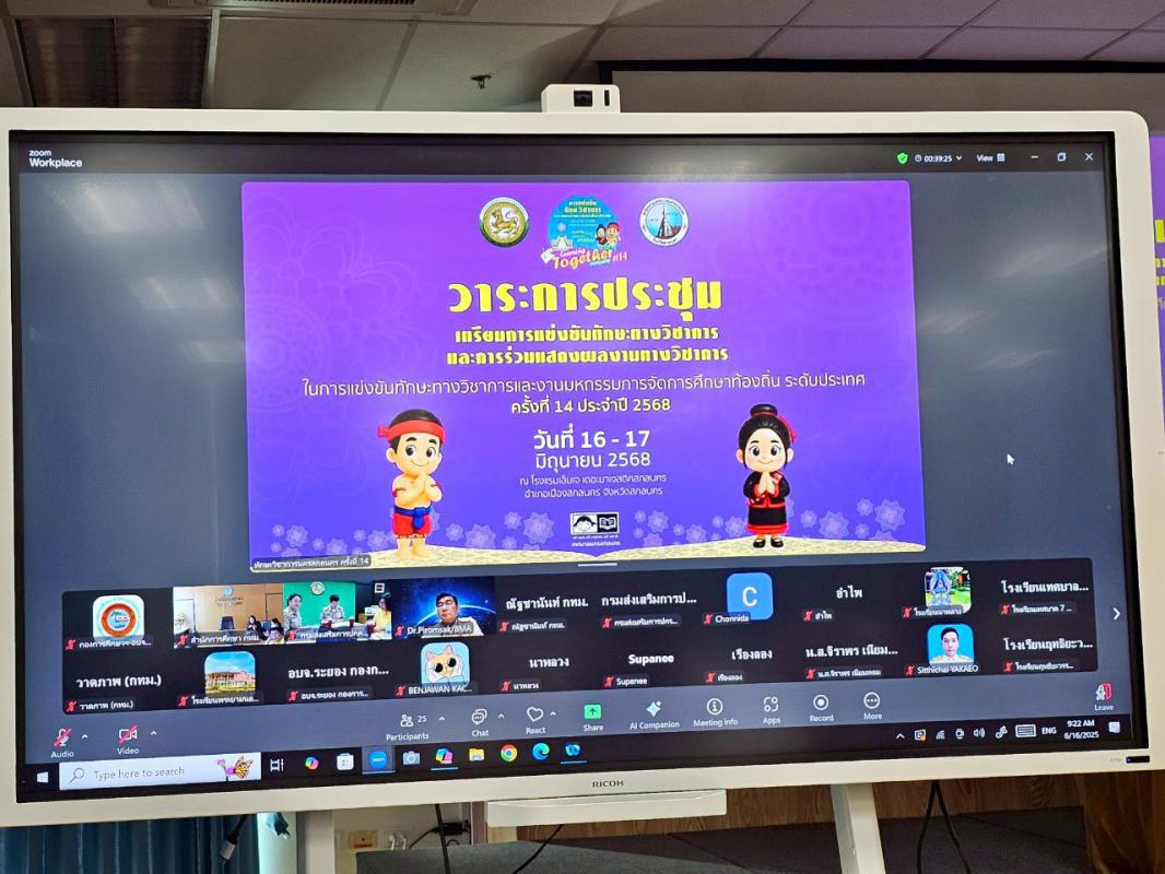 กองการศึกษาฯ อบจ.ระยอง เข้าร่วมสังเกตการณ์ในการประชุมเตรียมการแข่งขันทักษะทางวิชาการ และการร่วมแสดงผลงานทางวิชาการ ในการแข่งขันทักษะทางวิชาการ และงานมหกรรมการจัดการศึกษาท้องถิ่น ระดับประเทศครั้งที่ 14 ประจำปี 2568 ผ่าน Application Zoom