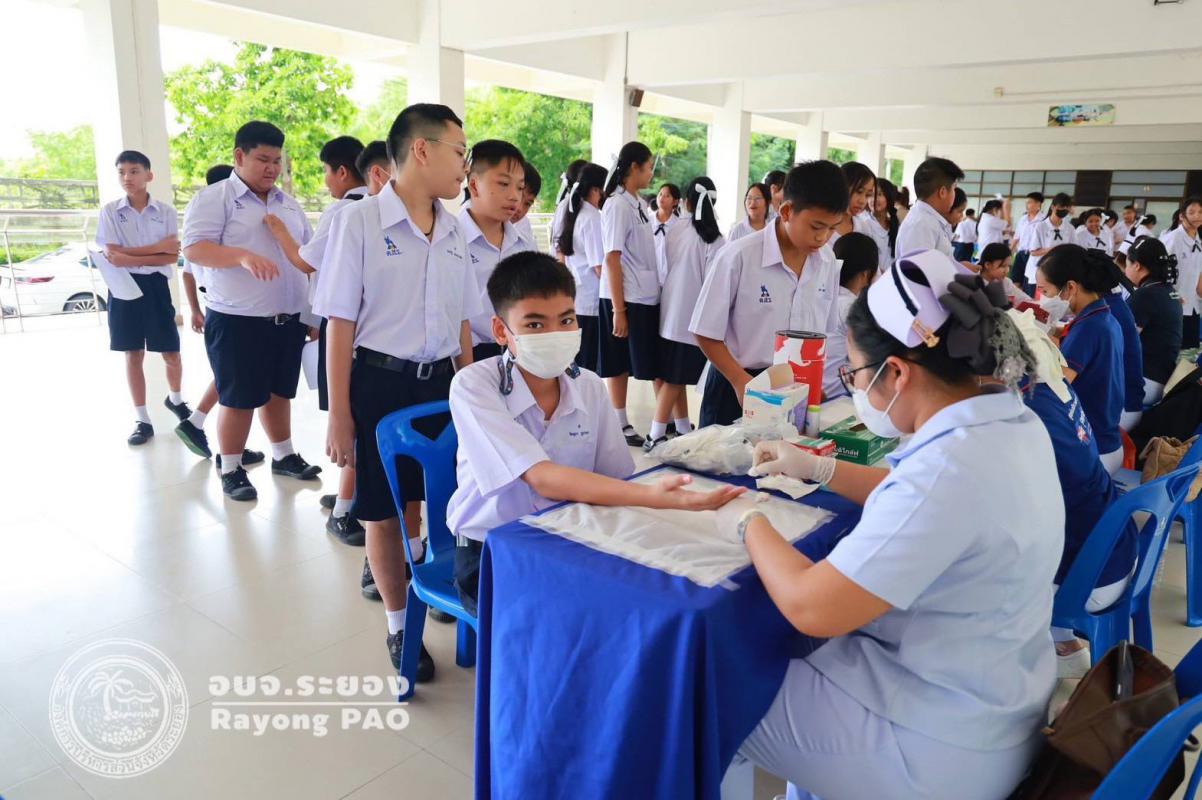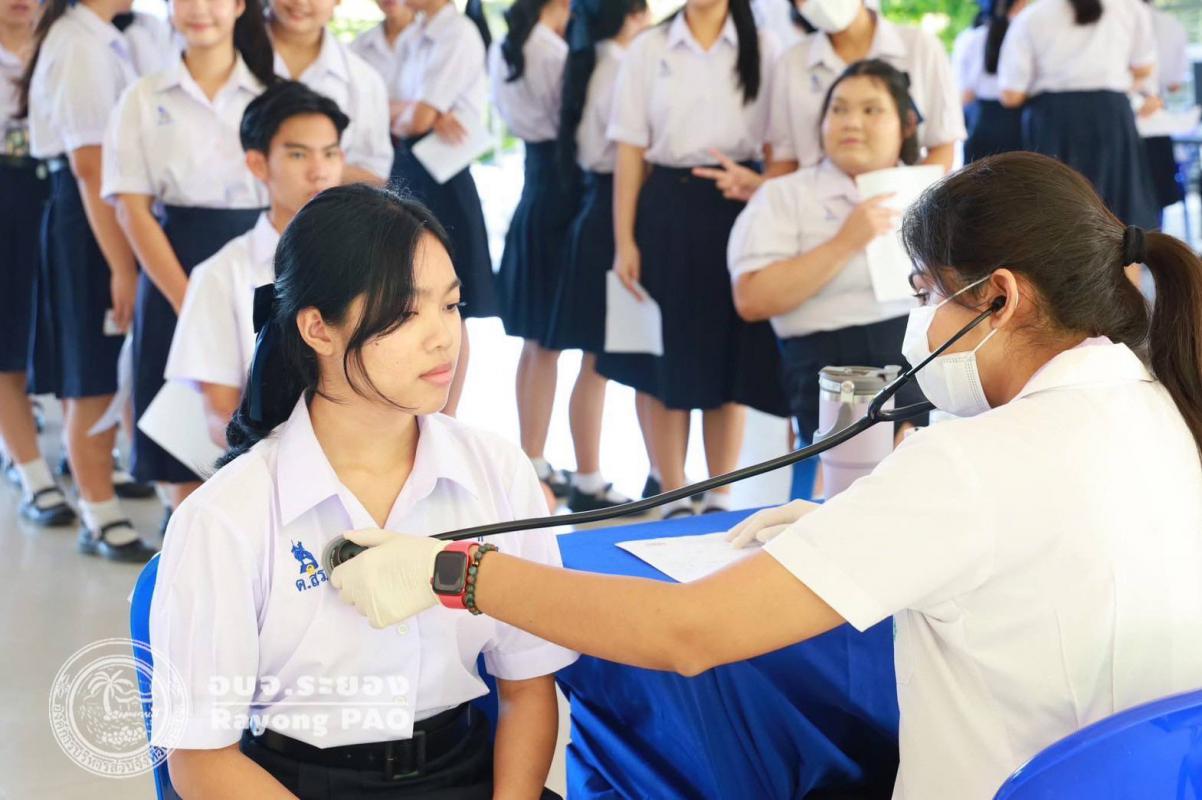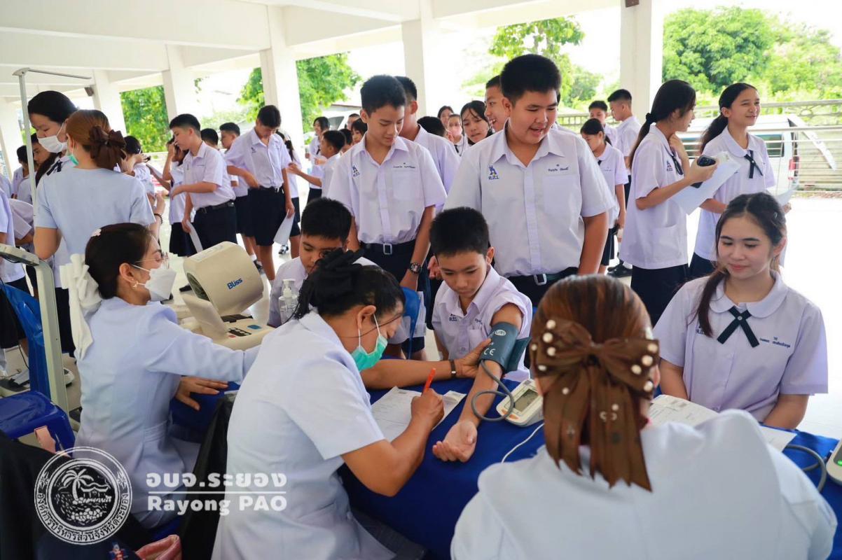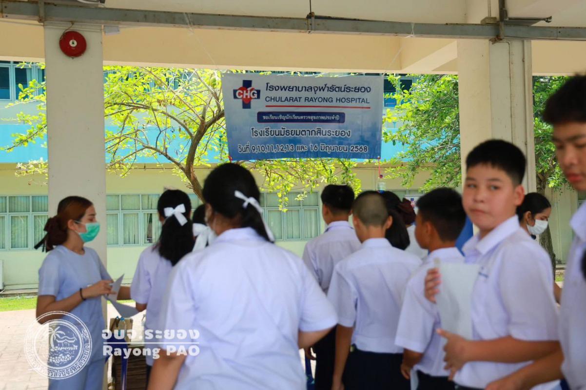 วันที่ 9 - 16 มิถุนายน 2568 งานส่งเสริมสุขภาพ ฝ่ายส่งเสริมสาธารณสุข กองสาธารณสุข อบจ.ระยอง ร่วมกับ โรงพยาบาลจุฬารัตน์ระยอง ได้จัดกิจกรรมตรวจสุขภาพนักเรียน โรงเรียนมัธยมตากสินระยอง ประจำปีการศึกษา 2568 สำหรับนักเรียน ระดับชั้นมัธยมศึกษาปีที่ 1 - 6 โดยมีวัตถุประสงค์เพื่อให้นักเรียนได้รับการตรวจสุขภาพเบื้องต้น และรับทราบถึงภาวะสุขภาพของตนเอง ส่งเสริมให้นักเรียนตระหนักถึงความสำคัญเรื่องสุขภาพตนเอง และดูแลสุขภาพตนเองได้อย่างถูกต้องต่อไป โดยมีนักเรียนเข้าร่วมตรวจสุขภาพจำนวนกว่า 3,900 คน