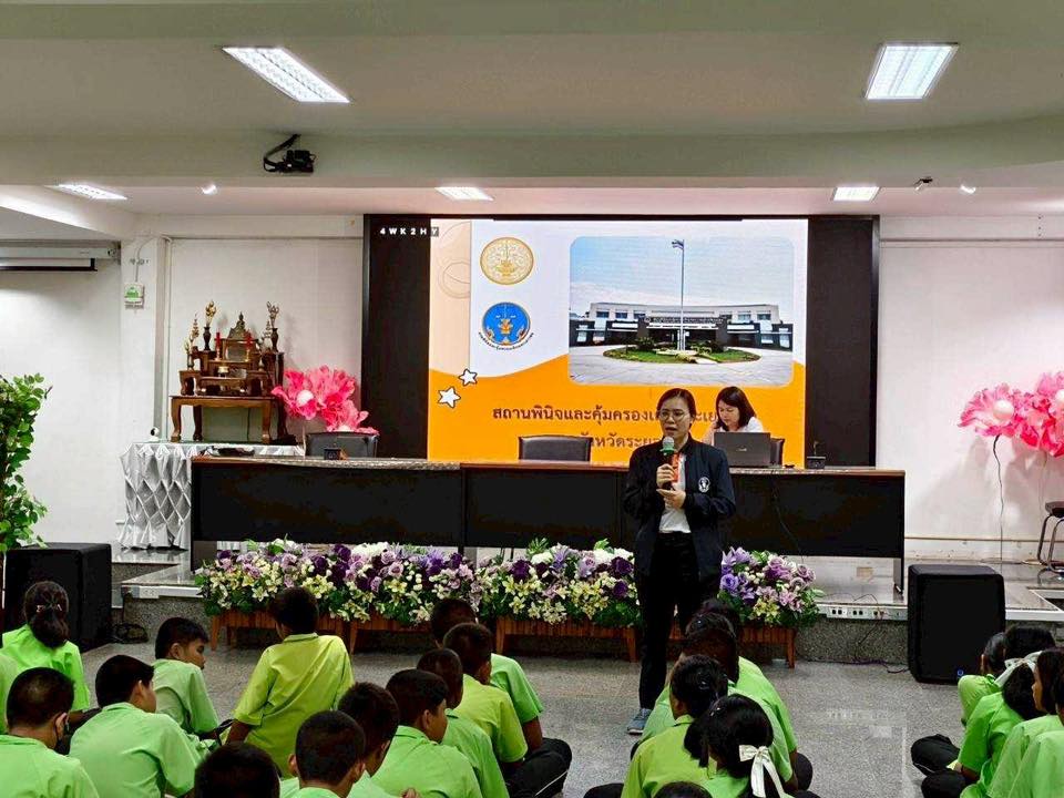 องค์การบริหารส่วนจังหวัดระยอง โดย กองการศึกษาศาสนาและวัฒนธรรม บูรณาการร่วมกับสถานพินิจและคุ้มครองเด็กและเยาวชนจังหวัดระยอง และสถานศึกษาในเขตจังหวัดระยอง จัดโครงการเครือข่ายการป้องกันปัญหาพฤติกรรมและการกระทำผิดของเด็กและเยาวชนจังหวัดระยอง รุ่นที่ 1 ในวันที่ 18 มิถุนายน 2568 ณ โรงเรียนวังจันทร์วิทยา อำเภอวังจันทร์ จังหวัดระยอง โดยมีนักเรียนโรงเรียนวังจันทร์วิทยา เข้าร่วมการอบรมครั้งนี้ จำนวน 100 คน มีวัตถุประสงค์เพื่อส่งเสริมและพัฒนาเด็กและเยาวชนให้มีความรู้ความเข้าใจ และปลูกจิตสำนึกในเรื่องกฎหมายและกระบวนการยุติธรรม ให้เด็กมีทักษะชีวิต ภูมิคุ้มกันทางจิตใจ และพฤติกรรมที่เหมาะสม โดยมีวิทยากรจาก สถานพินิจฯ, บ้านพักเด็กและครอบครัวจังหวัดระยอง และศูนย์คริสเตียนบริการไมตรีจิต (บ้านสะมาเรีย) มาให้ความรู้และประสบการณ์ในการป้องกันปัญหาพฤติกรรม และการกระทำผิดของเด็ก และเยาวชน