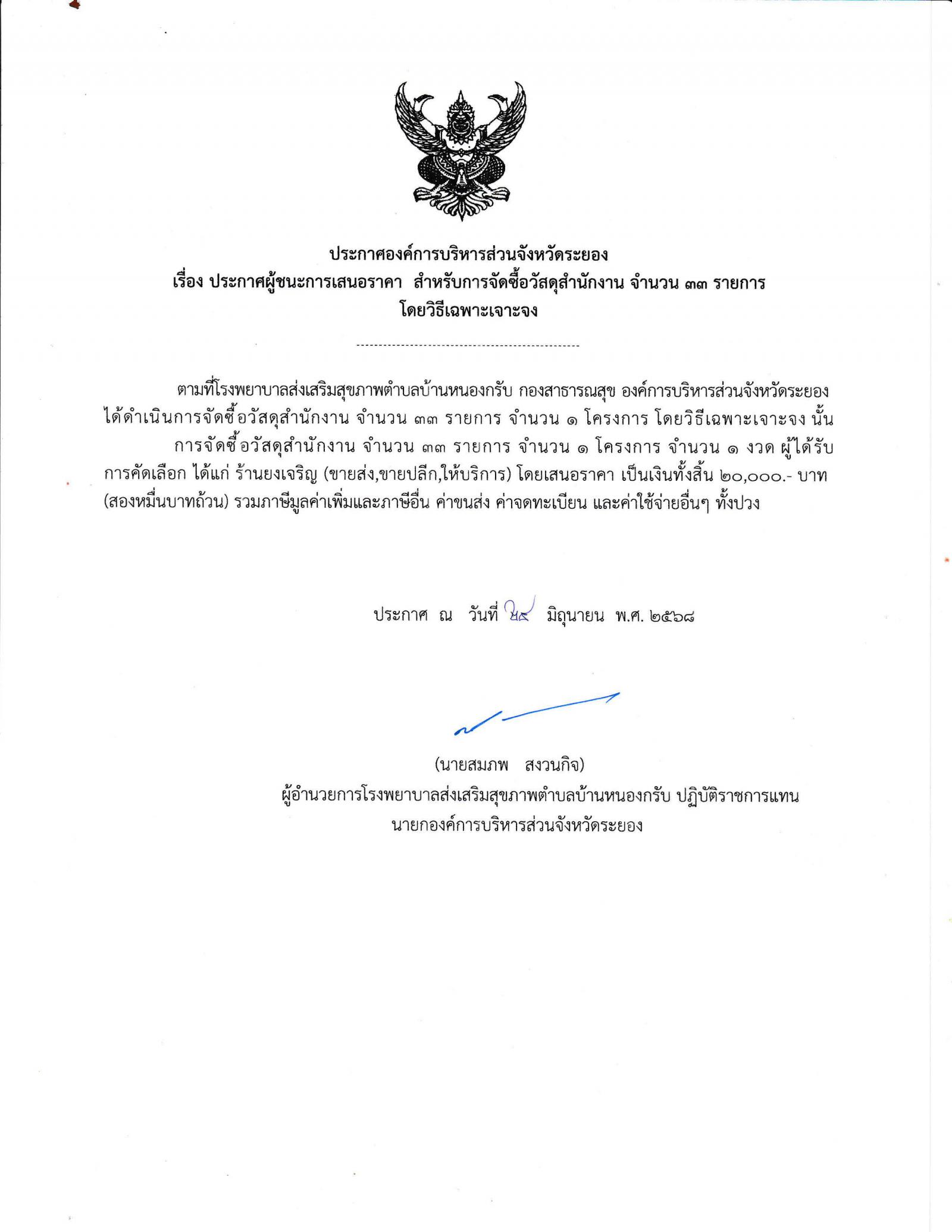 📌ประกาศผู้ชนะการเสนอราีคา จ้างเหมาจัดทำทำเนียบองค์การบริหารส่วนจัหวัดระยอง