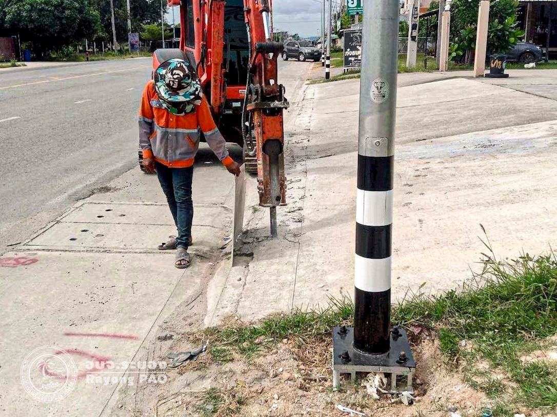วันที่ 25 มิถุนายน 2568 ผู้รับจ้างได้เข้าดำเนินการติดตั้งเสาไฟฟ้าสูง 9 เมตร จำนวน 101 ต้น และทาสีเสาไฟจำนวน 51 ต้น ของโครงการติดตั้งไฟฟ้าส่องสว่างสาธารณะ ถนน อบจ.รย.0108 สายบ้านเชิงเนิน - บ้านชากบก ครอบคลุมพื้นที่ อำเภอเมืองระยอง และอำเภอบ้านค่าย จังหวัดระยอง เพื่อเพิ่มความปลอดภัยและทรัพย์สินของประชาชนในพื้นที่ รวมถึงอำนวยความสะดวกในการสัญจรยามค่ำคืน โดยหลังจากการติดตั้งเสาไฟเสร็จเรียบร้อยแล้วจะทำการติดตั้งโคมไฟถนนขั้นตอนถัดไป