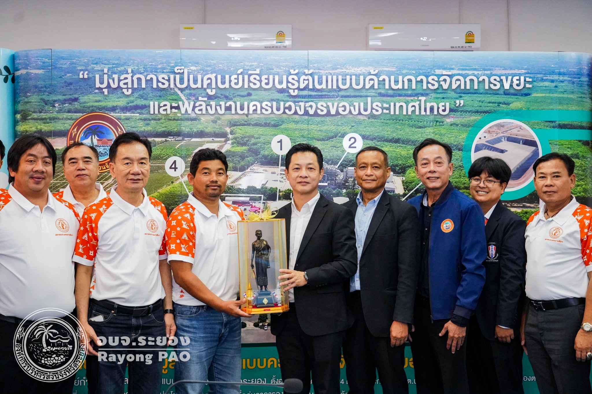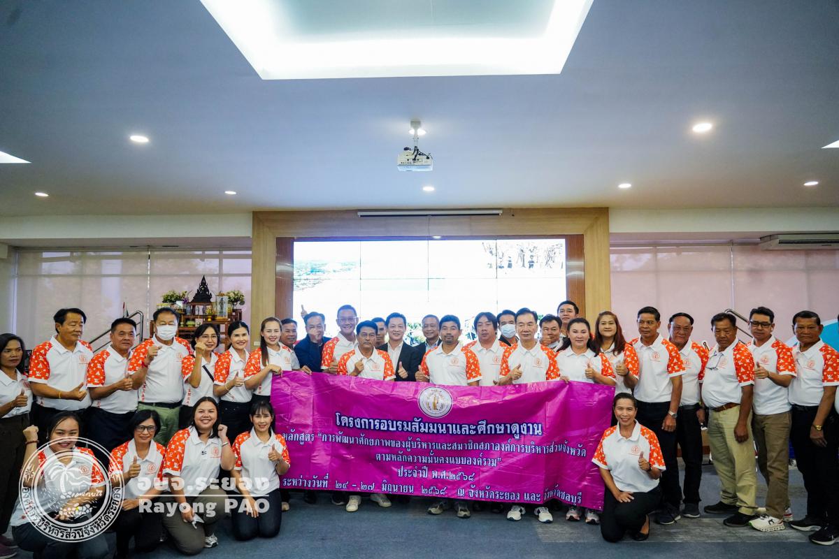 วันที่ 25 มิถุนายน 2568 เวลา 09.00 น. องค์การบริหารส่วนจังหวัดระยอง นำโดย นายกิตติ เกียรติ์มนตรี รองนายกองค์การบริหารส่วนจังหวัดระยอง (1) พร้อมด้วย นายพายัพ ผ่องใส เลขานุการนายกองค์การบริหารส่วนจังหวัดระยอง, นายสุริยะ ศิริวัฒน์ ผู้อำนวยการกองสาธารณสุข และเจ้าหน้าที่ที่เกี่ยวข้อง ร่วมให้การต้อนรับคณะศึกษาดูงานจาก องค์การบริหารส่วนจังหวัดนครราชสีมา ซึ่งนำโดย นายชัยวัฒน์ ชู้กระโทก รองนายกองค์การบริหารส่วนจังหวัดนครราชสีมา พร้อมคณะสมาชิกสภาองค์การบริหารส่วนจังหวัดนครราชสีมา และเจ้าหน้าที่ที่เกี่ยวข้อง เข้าศึกษาดูงานในโครงการอบรมสัมมนาและศึกษาดูงาน หลักสูตร “การพัฒนาศักยภาพของผู้บริหารและสมาชิกสภาองค์การบริหารส่วนจังหวัดตามหลักความมั่นคงแบบองค์รวม" ณ ศูนย์กำจัดขยะมูลฝอยรวมแบบครบวงจร จังหวัดระยอง