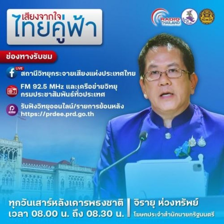 ด้วยกระทรวงมหาดไทย ได้รับการประสานจาก โฆษกประจำสำนักนายกรัฐมนตรี (นายจิรายุ ห่วงทรัพย์ ที่ปรึกษาของนายกรัฐมนตรี) ให้ดำเนินการประชาสัมพันธ์ภารกิจในการแก้ไขปัญหาสถานการณ์ชายแดน ไทย - กัมพูชา ของนายกรัฐมนตรี โดยขอความอนุเคราะห์กระทรวงมหาดไทยเผยแพร่สัญญาณภาพและเสียงจากรายการ "เสียงจากใจไทยคู่ฟ้า" ออกอากาศทางสถานีโทรทัศน์แห่งประเทศไทย (NBT ๒ HD) ทุกเช้าวันเสาร์ เวลา๘.๐๐ -๐๘.๓๐ น. Youtube Channel ช่อง เสียงจากใจไทยคู่ฟ้า Facebook สถานีวิทยุกระจายเสียงแห่งประเทศไทย วิทยุ FM ๙๒.๕ MHz และเครือข่ายวิทยุกรมประชาสัมพันธ์ทั่วประเทศในวันเสาร์ที่๒๘ มิถุนายน๒๕๖๘ เป็นต้นไป ไปยังช่องทางการประชาสัมพันธ์ที่กระทรวงมหาดไทยรับผิดชอบอาทิ หอกระจายข่าว เสียงตามสายชุมชน สื่อโทรทัศน์ท้องถิ่น พร้อมจัดส่งคำบรรยายของรายการ "เสียงจากใจไทยคู่ฟ้า" ให้จังหวัด อำเภอ และองค์กรปกครองส่วนท้องถิ่น ใช้เป็นข้อมูลการประชาสัมพันธ์ในการจัดทำ สื่อประชาสัมพันธ์เผยแพร่ไปยังสาธารณะ เพื่อให้ประชาชนเกิดความรู้ความเข้าใจที่ถูกต้องเกี่ยวกับการแก้ไข ปัญหาสถานการณ์ชายแดน ไทย - กัมพูชา ของนายกรัฐมนตรี