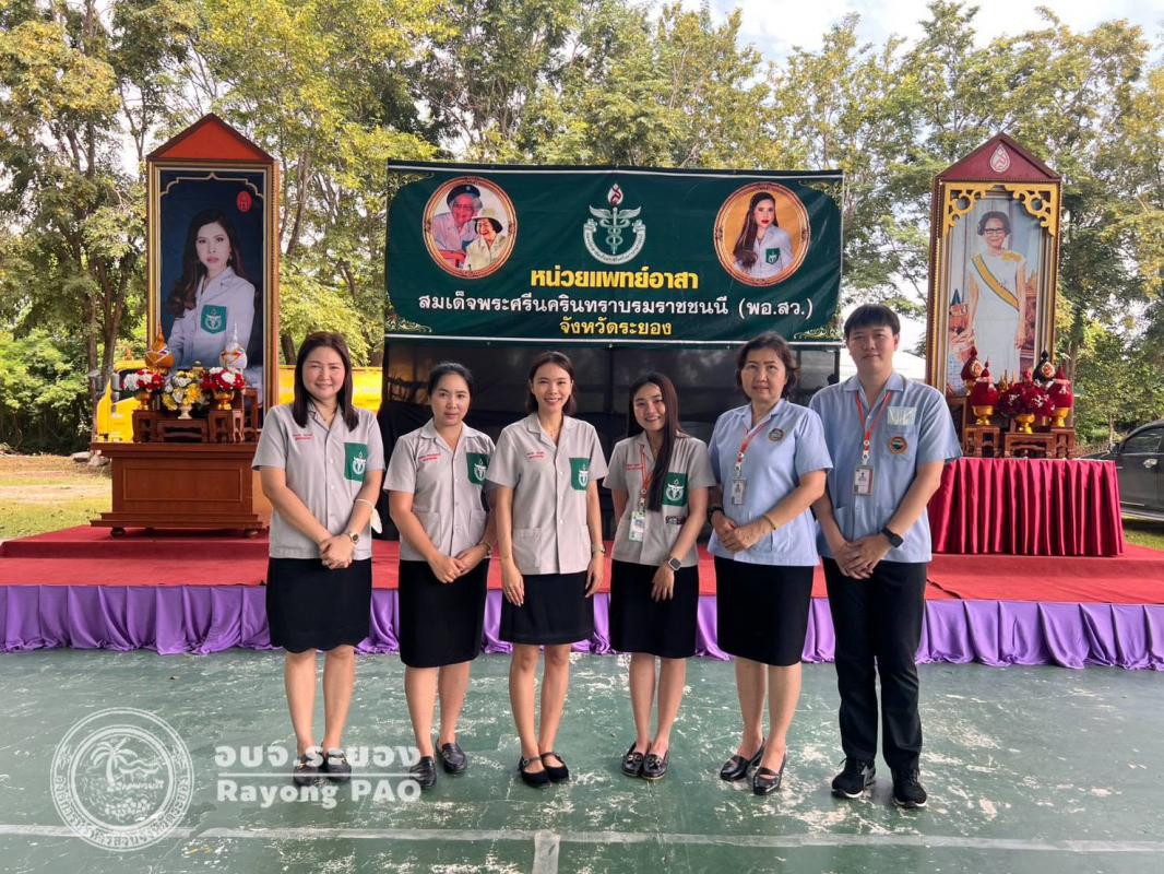 วันที่ 1 กรกฎาคม 2568 งานส่งเสริมสุขภาพ ฝ่ายส่งเสริมสาธารณสุข อบจ.ระยอง ร่วมกับโรงพยาบาลส่งเสริมสุขภาพตำบลในเขตพื้นที่อำเภอเมืองระยอง ร่วมกับหน่วยงานในจังหวัดระยองออกหน่วยแพทย์เคลื่อนที่ พอ.สว. ครั้งที่ 4 ณ โรงเรียนเฉลิมพระเกียรติสมเด็จพระศรีนครินทร์ ระยอง ต.นาตาขวัญ อ.เมืองระยอง จ.ระยอง โดยมีวัตถุประสงค์เพื่อให้ความช่วยเหลือประชาชนในด้านการแพทย์และสาธารณสุข การรักษา ป้องกัน ส่งเสริมและฟื้นฟูสุขภาพอนามัยของประชาชนในถิ่นทุรกันดาร ห่างไกลคมนาคม