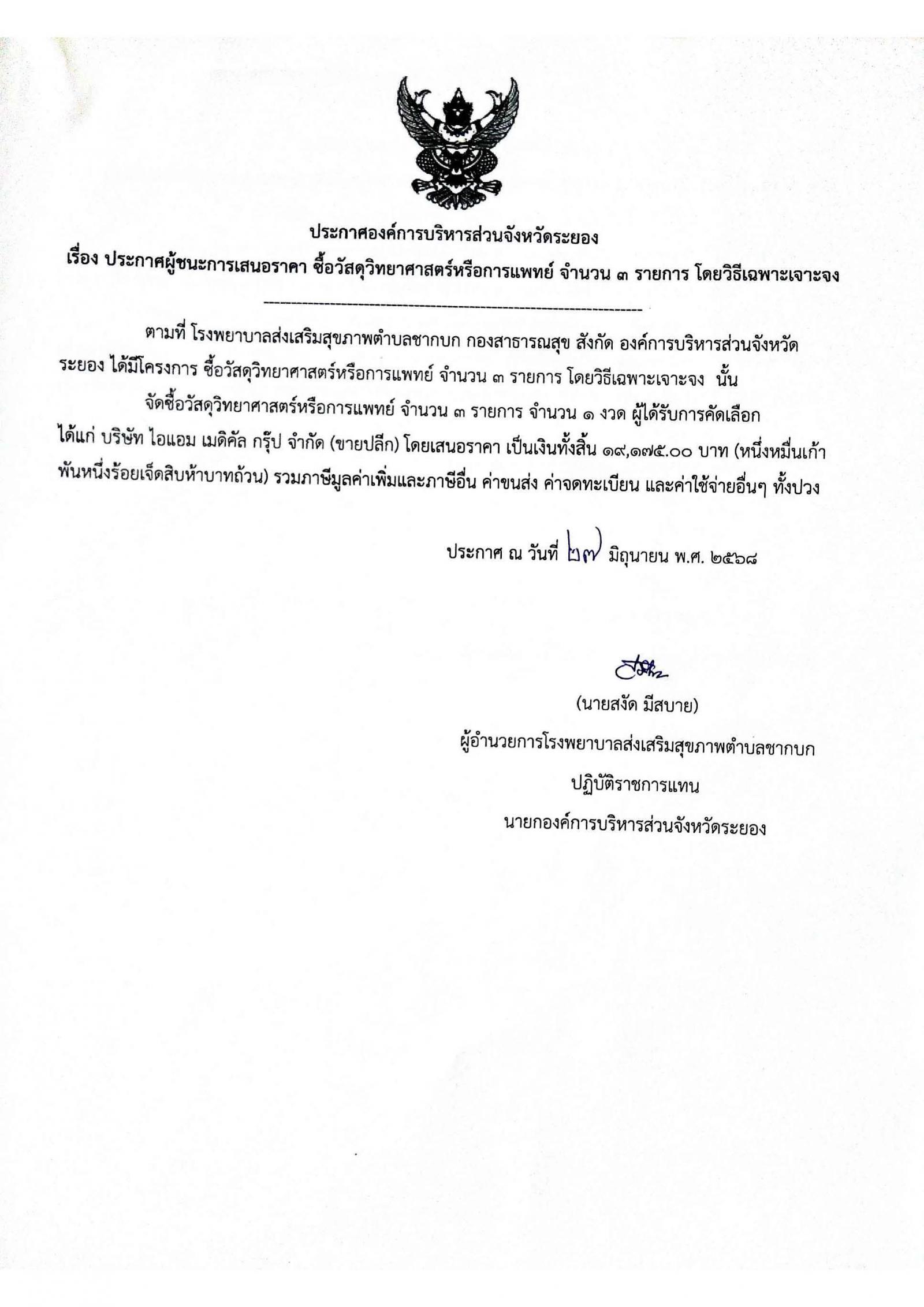 📌ประกาศผู้ชนะการเสนอราีคา จ้างเหมาจัดทำทำเนียบองค์การบริหารส่วนจัหวัดระยอง