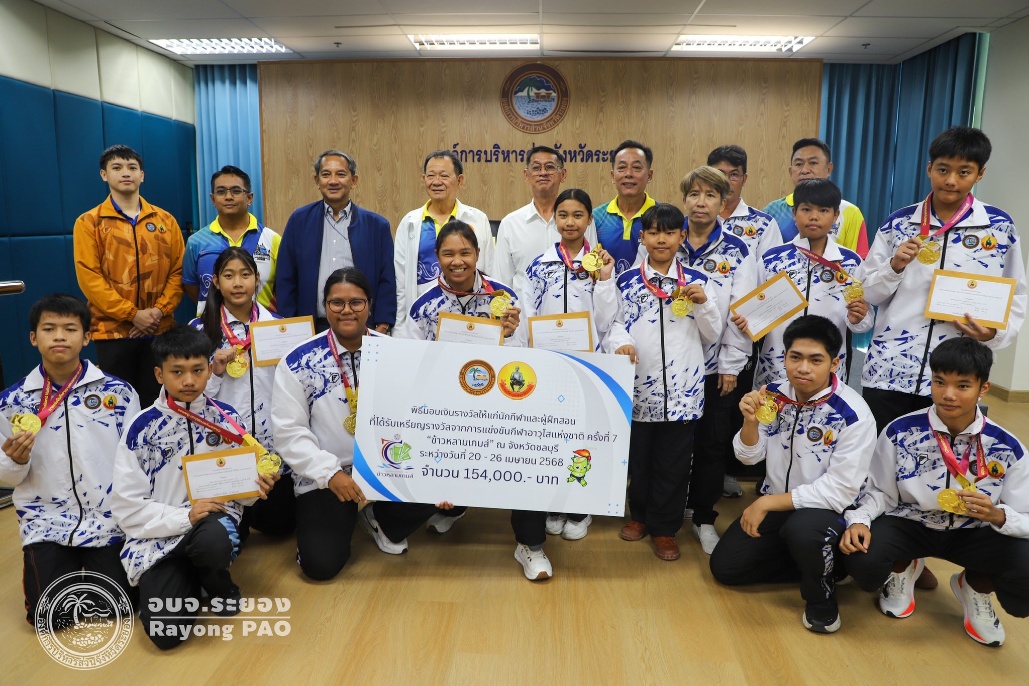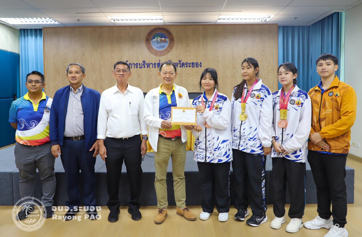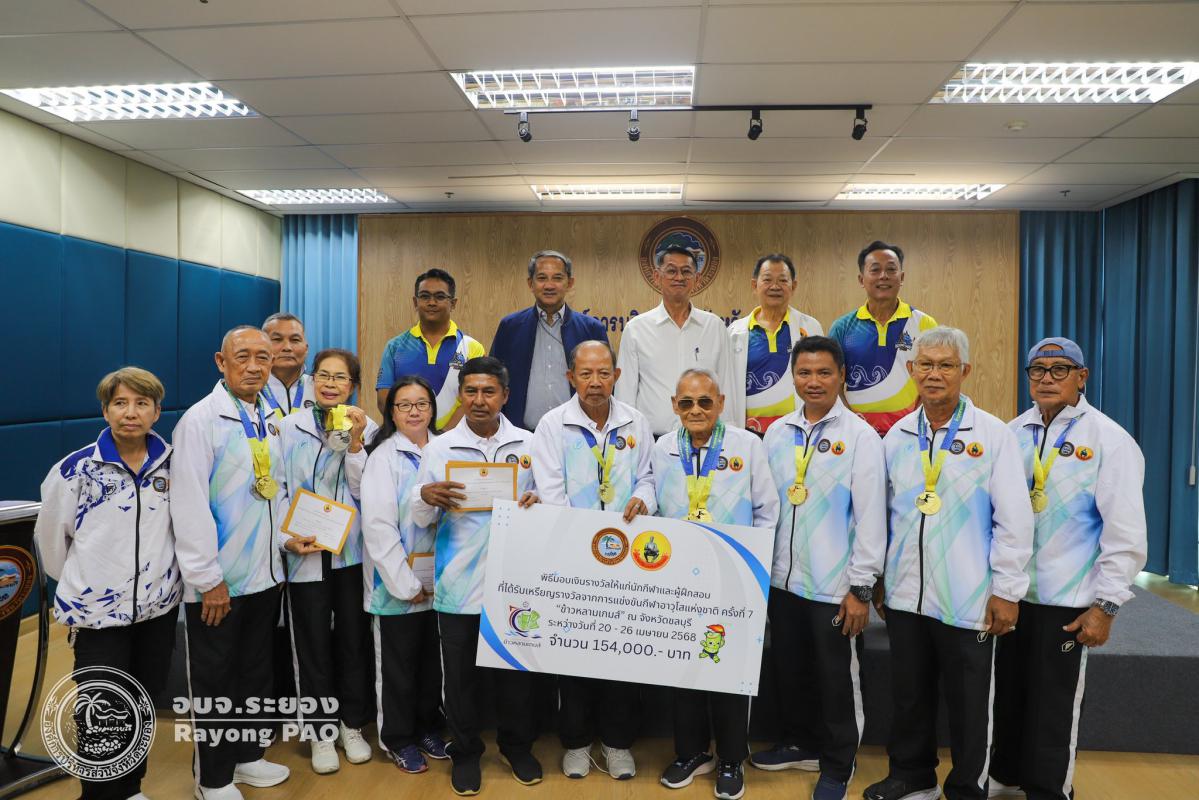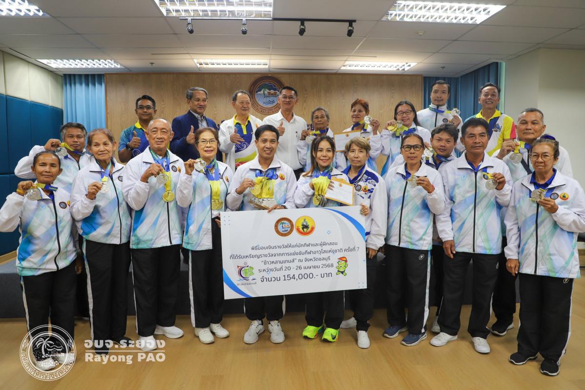 วันที่ 17 กรกฎาคม 2568 เวลา 14.00 น. นายปิยะ ปิตุเตชะ นายกองค์การบริหารส่วนจังหวัดระยอง เป็นประธานในพิธีมอบเงินค่าเหรียญรางวัลให้กับนักกีฬาและผู้ฝึกสอน พร้อมด้วย นายวิเชียร แสงวงศ์กิจ นายกสมาคมกีฬาแห่งจังหวัดระยอง นายประสาต์ พฤกษาชาติ รองนายกอบจ.ระยอง (2) นายพายัพ ผ่องใส เลขานุการนายกอบจ.ระยอง นายมนัส สมศักดิ์ สมาชิกสภาอบจ.ระยอง เขต 1 อำเภอวังจันทร์ และเจ้าหน้าที่ที่เกี่ยวข้อง เข้าร่วมพิธีดังกล่าวอย่างพร้อมเพรียงกัน เพื่อเป็นการเชิดชูเกียรติและร่วมแสดงความยินดีกับนักกีฬาที่สร้างชื่อเสียงให้จังหวัดระยอง ที่เข้าร่วมแข่งขันกีฬาเยาวชนแห่งชาติ ครั้งที่ 40 จังหวัดชลบุรี กีฬาแห่งชาติ ครั้งที่ 49 จังหวัดจันทบุรี กีฬาคนพิการแห่งชาติ ครั้งที่ 39 จังหวัดจันทบุรี และกีฬาอาวุโสแห่งชาติ ครั้งที่ 7 จังหวัดชลบุรี ณ ห้องประชุม 1 ชั้น 3 อบจ.ระยอง