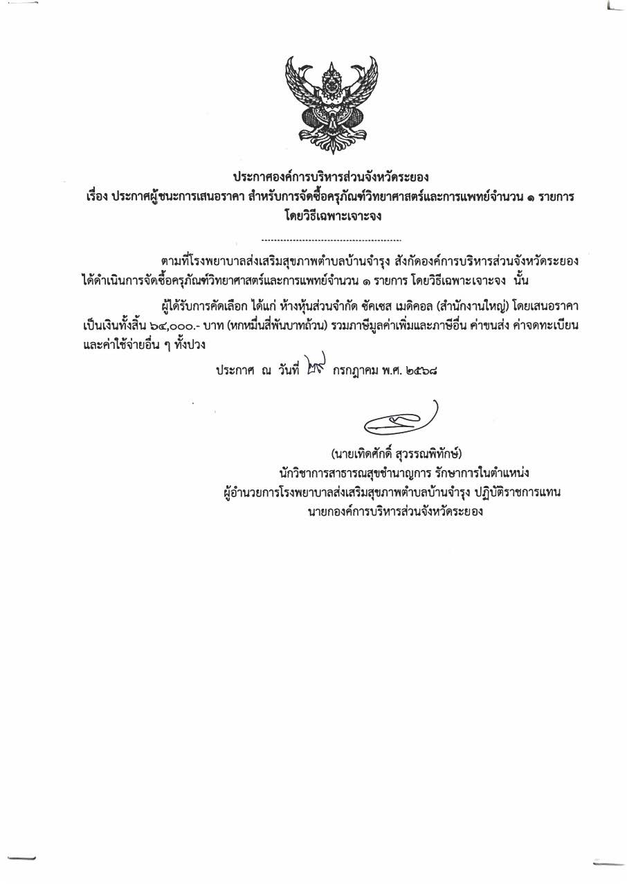 📌ประกาศผู้ชนะการเสนอราีคา จ้างเหมาจัดทำทำเนียบองค์การบริหารส่วนจัหวัดระยอง