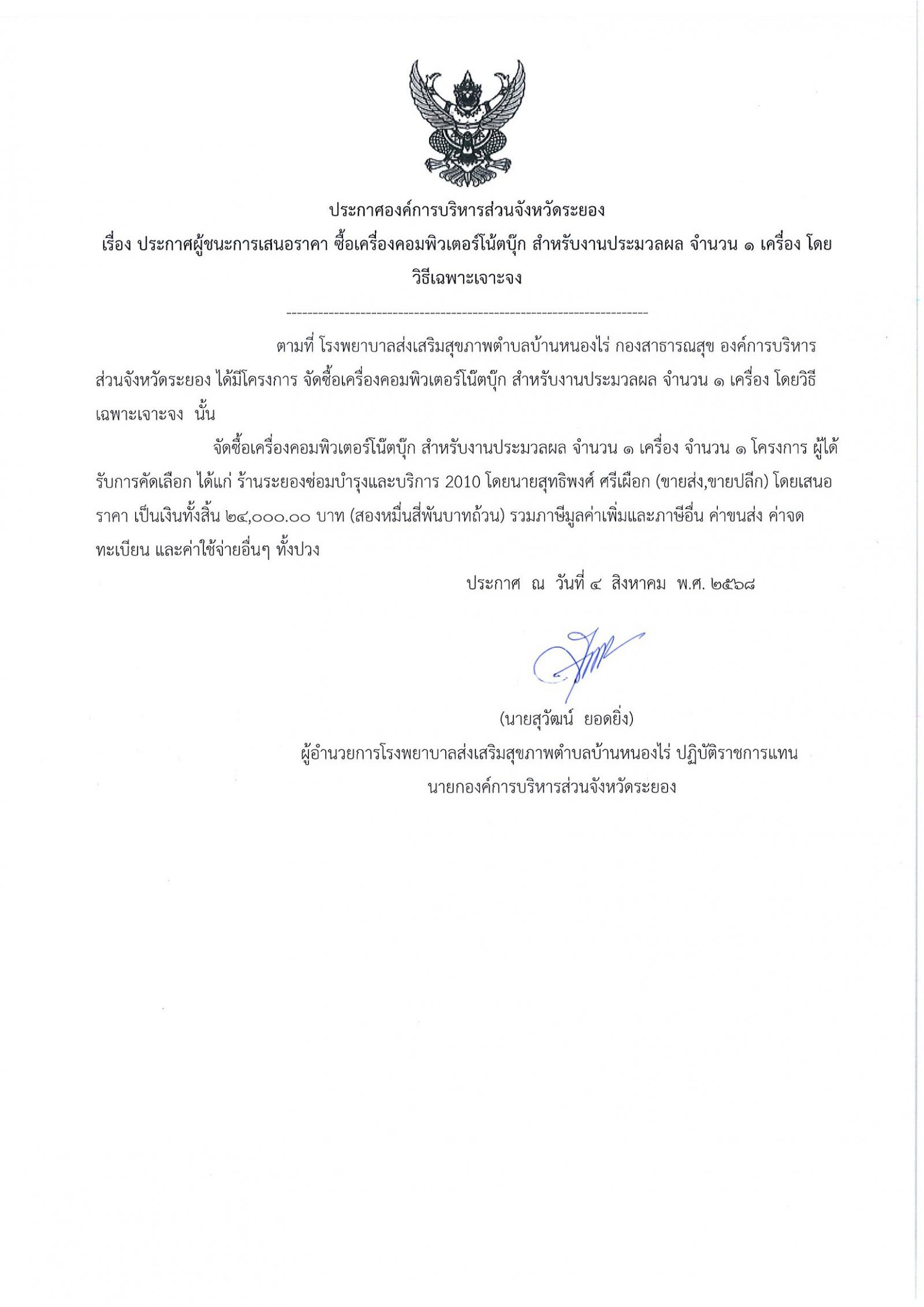 📌ประกาศผู้ชนะการเสนอราีคา จ้างเหมาจัดทำทำเนียบองค์การบริหารส่วนจัหวัดระยอง
