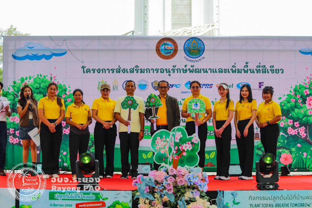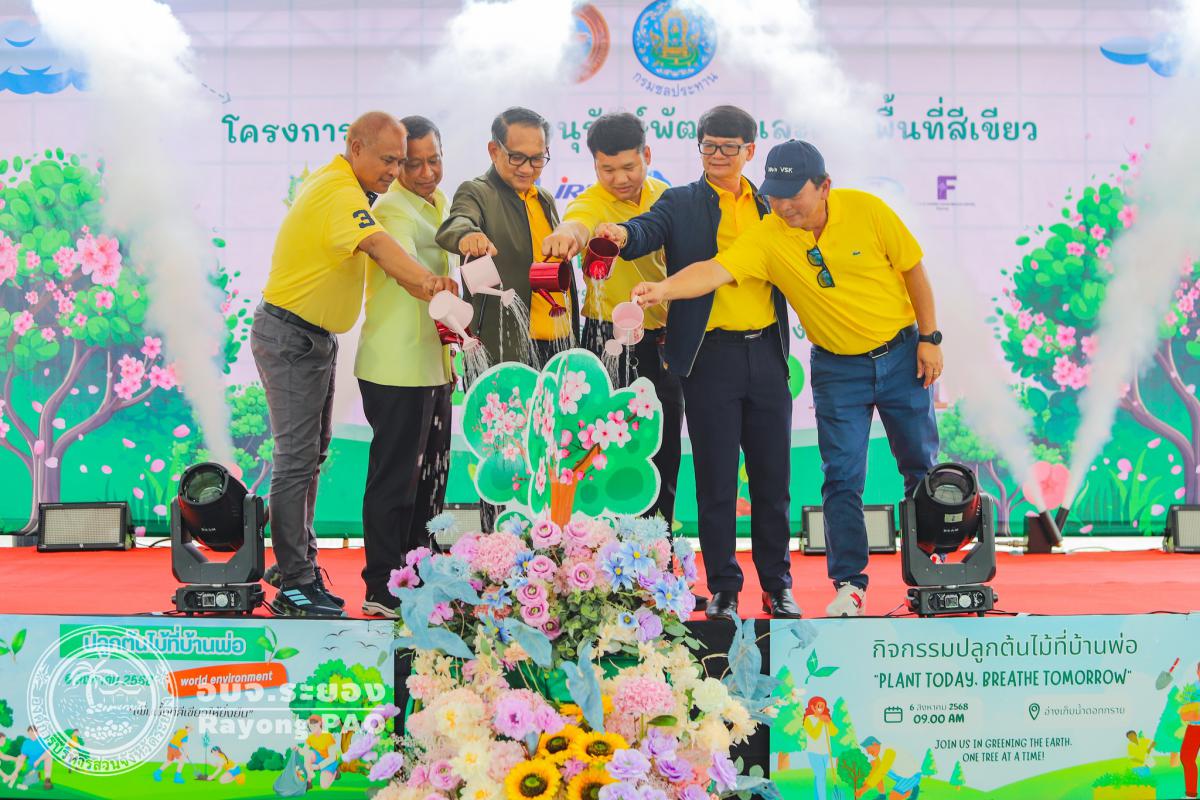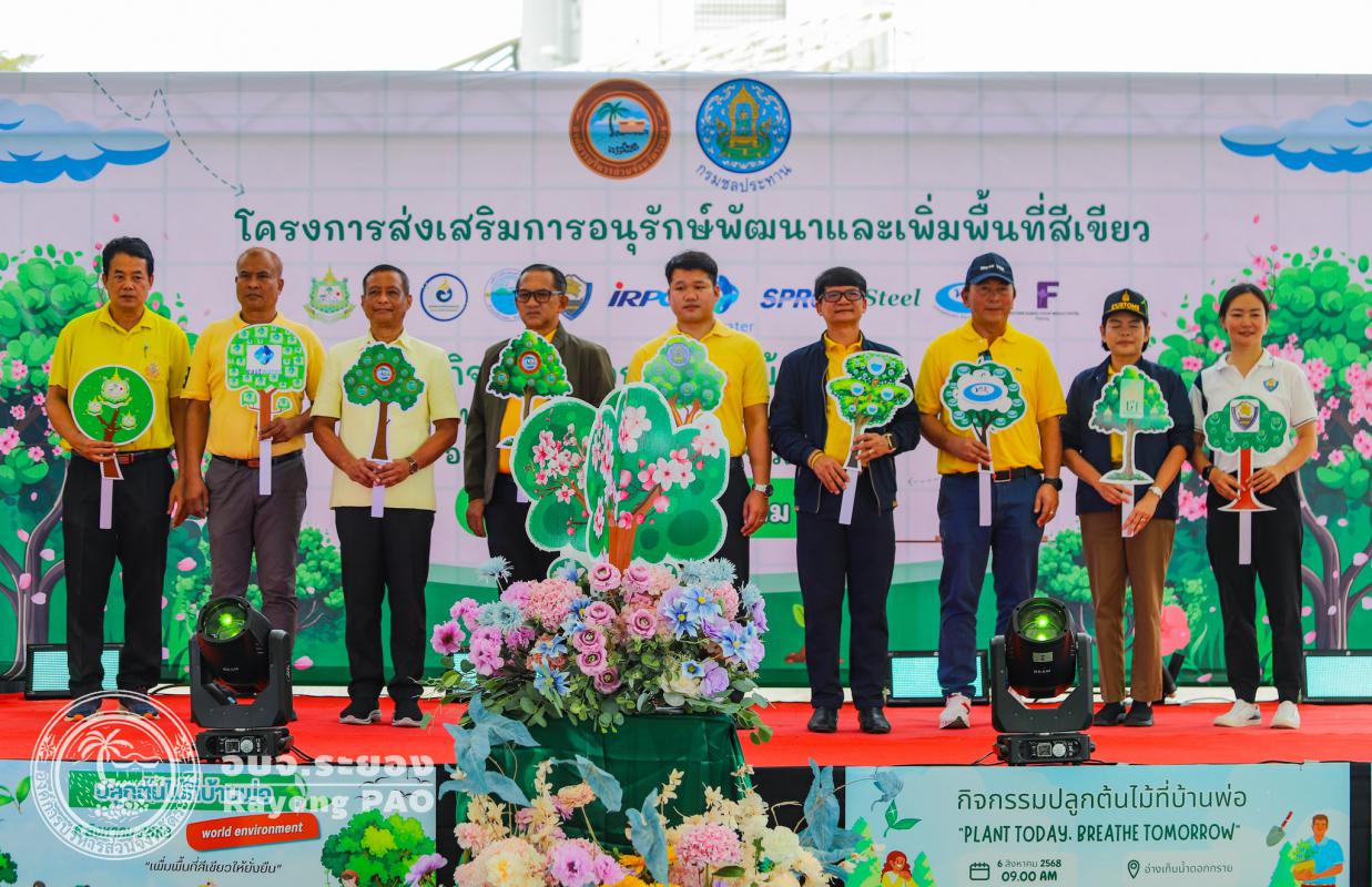 วันที่ 6 สิงหาคม 2568 เวลา 10.00 น. นายประสานต์ พฤกษาชาติ รองนายกองค์การบริหารส่วนจังหวัดระยอง (2) เป็นประธานเปิดโครงการส่งเสริมอนุรักษ์ พัฒนา และการเพิ่มพื้นที่สีเขียว “กิจกรรมปลูกต้นไม้บ้านพ่อ” พร้อมด้วยตัวแทนจากหน่วยงานภาครัฐ ภาคเอกชน สถานศึกษา ประชาชนในพื้นที่ และเจ้าหน้าที่ที่เกี่ยวข้องร่วมกันปลูกต้นกัลปพฤกษ์ บริเวณถนนรอบอ่างเก็บน้ำดอกกราย 2 ข้างทาง ระยะทาง 1.5 กิโลเมตร เพื่อส่งเสริมและสนับสนุนการอนุรักษ์ ฟื้นฟู และการใช้ประโยชน์พื้นที่สีเขียวอย่างมีประสิทธิภาพและยั่งยืน รวมถึงปลูกจิตสำนึกและสร้างความตระหนักถึงความสำคัญของการอนุรักษ์ และฟื้นฟูทรัพยากรธรรมชาติและสิ่งแวดล้อมในพื้นที่จังหวัดระยอง ณ อ่างเก็บน้ำดอกกราย อำเภอปลวกแดง จังหวัดระยอง