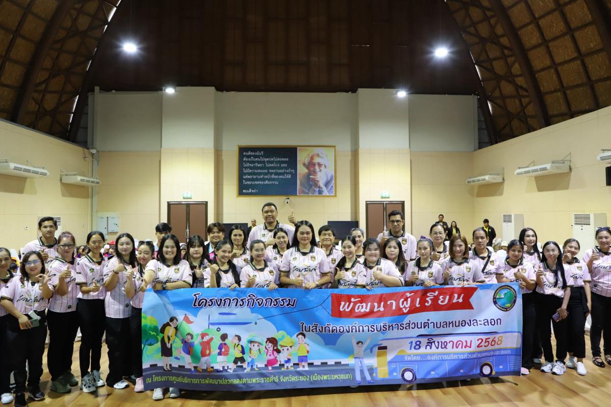 ยินดีต้อนรับคณะองค์การบริหารส่วนตำบลหนองละลอก จังหวัดระยอง นำนักเรียนชั้นอนุบาล ๓ และประถมศึกษาปีที่ ๑ พร้อมนักเรียนจากศูนย์พัฒนาเด็กเล็กวัดดอนจันทร์ และนักเรียนจากศูนย์พัฒนาเด็กเล็กวัดละหารไร่ ชั้นอนุบาล ๒ เข้าสู่เมืองพระมหาชนกซึ่งเป็นส่วนหนึ่งขององค์การบริหารส่วนจังหวัดระยอง เจ้าหน้าที่ต้อนรับตั้งแต่น้องลงจากรถ และพาเข้าสู่อาคารอบรมและการเรียนรู้ อาคารปูทะเลย์มหาวิชชาลัย ร่วมทำกิจกรรมสันทนาการที่เหมาะสมกับวัยของเด็ก เพื่อสร้างความสนุกสนาน เรียกได้ว่ากิจกรรมสร้างรอยยิ้ม เสียงหัวเราะ ให้กับน้องๆได้มีความสุข ถัดมาน้องจะได้นั่งรถราง แวะจุดสำคัญภายในเมืองพระมหาชนก เช่น สะพานจัมปานคร ฟาร์มแกะ@ดอกกราย ชมวิวบรรยากาศสันอ่างเก็บน้ำดอกกราย และเข้าชมอาคารพระมหาชนกที่รวบรวมจิตวิญญาณนำพระทัยของในหลวงรัชกาลที่ ๙ ชมวิวบรรยากาศจุดชมวิวบรรยากาศดี สวยงาม สร้างความตื่นเต้นไม่ใช่น้อยให้กับน้อง ช่วงพักเที่ยงร่วมรับประทานอาหารกลางวัน และทำกิจกรรมวาดภาพระบายสีตามจินตนาการที่สอดคล้องกับการมาทัศนศึกษา ซึ่งกิจกรรมทั้งหมดของวันนี้เสริมสร้างพัฒนาการด้านร่างกาย อารมณ์ สังคม สติปัญญา และปลูกฝังแนวทางแห่งความดี เพื่อให้เป็นผู้ใหญ่ที่มีความสุขที่ยั่งยืนในอนาคต ณ อาคารพระมหาชนก อ่างเก็บน้ำดอกกราย อำเภอปลวกแดง จังหวัดระยอง