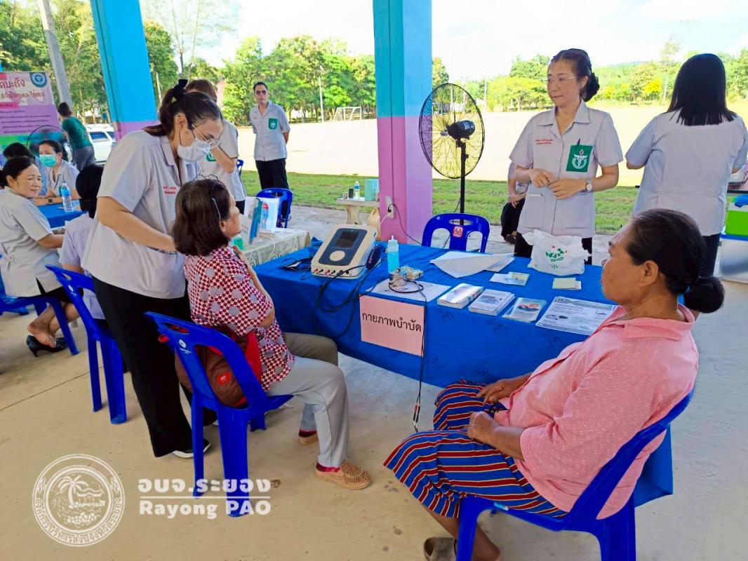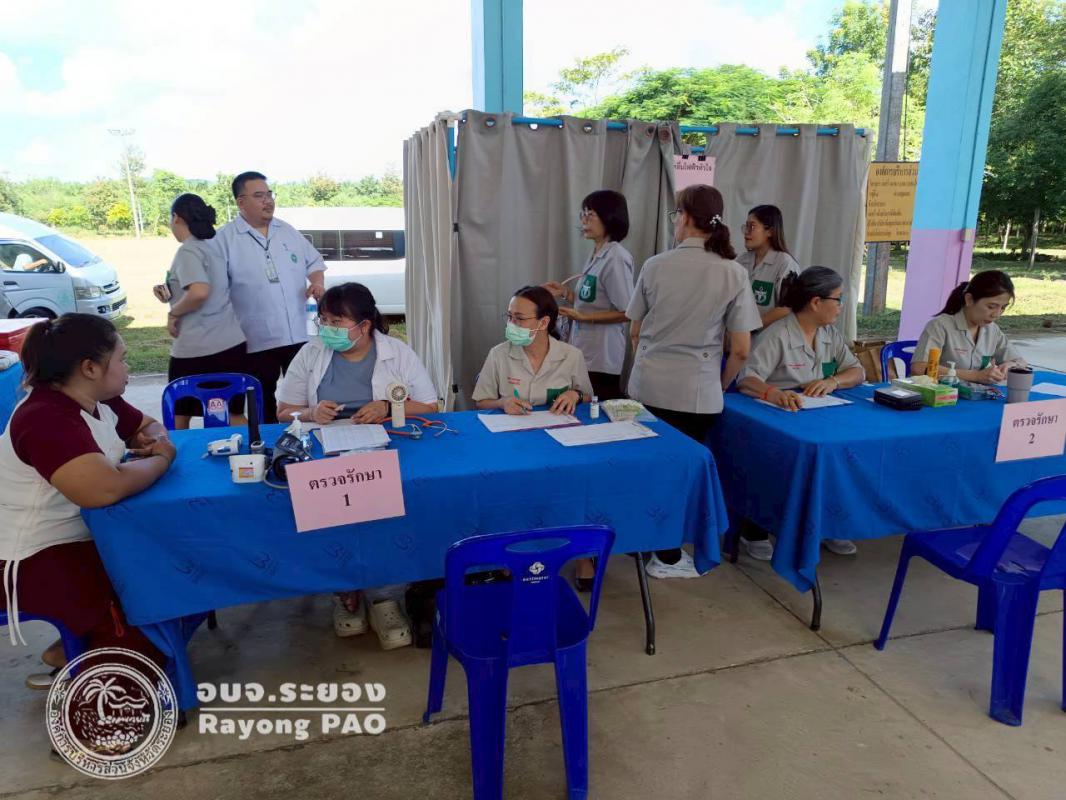 วันที่ 20 สิงหาคม 2568 งานส่งเสริมสุขภาพ ฝ่ายส่งเสริมสาธารณสุข ร่วมกับโรงพยาบาลส่งเสริมสุขภาพตำบลในเขตพื้นที่อำเภอวังจันทร์ ร่วมกับหน่วยงานในจังหวัดระยอง ออกหน่วยแพทย์เคลื่อนที่ พอ.สว. ครั้งที่ 5 ณ โรงเรียนบ้านหนองม่วง ต.ชุมแสง อ.วังจันทร์ จ.ระยอง โดยมีวัตถุประสงค์เพื่อให้ความช่วยเหลือประชาชนในด้านการแพทย์และสาธารณสุข การรักษา ป้องกัน ส่งเสริมและฟื้นฟูสุขภาพอนามัยของประชาชนในถิ่นทุรกันดาร ห่างไกลคมนาคม