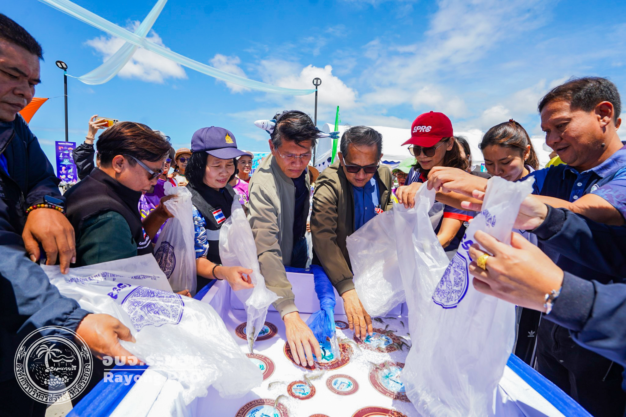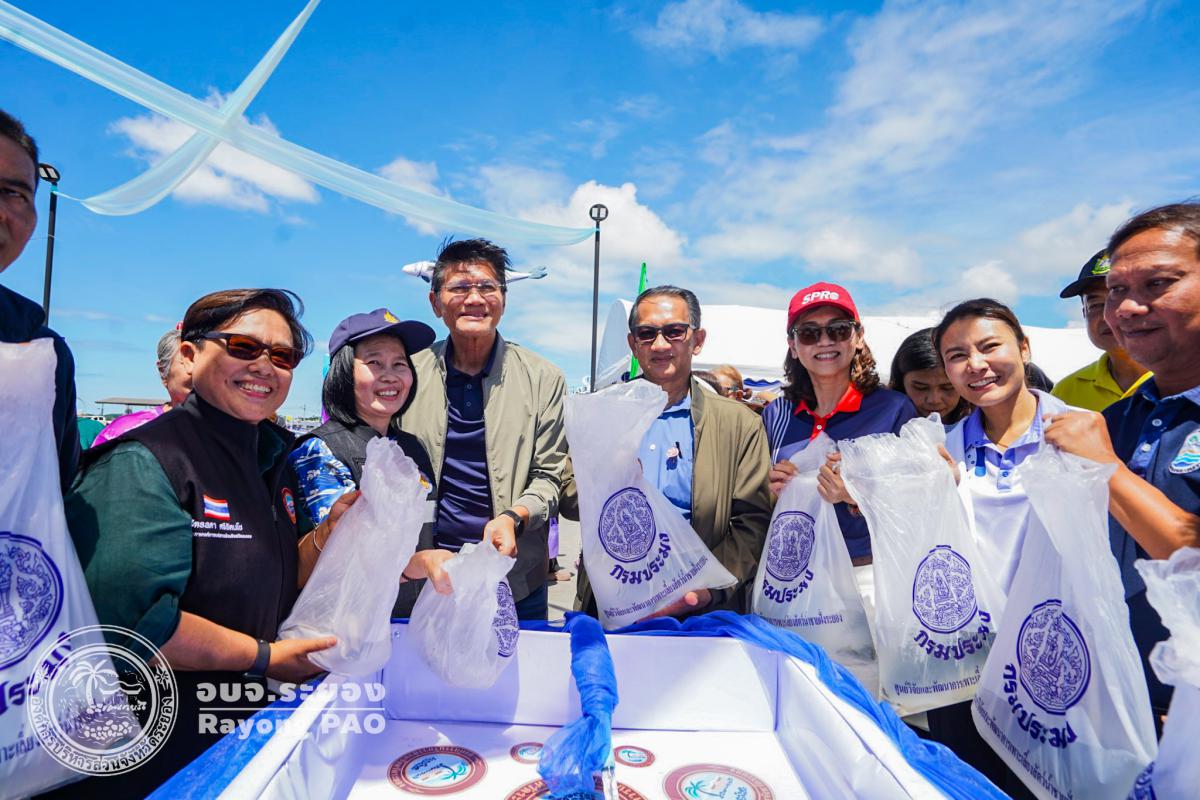 วันที่ 20 สิงหาคม 2568 เวลา 10.00 น. นายประสานต์ พฤกษาชาติ รองนายกองค์การบริหารส่วนจังหวัดระยอง (2) เป็นประธานเปิดโครงการอนุรักษ์ทรัพยากรธรรมชาติทางทะเลและชายฝั่ง กิจกรรม “ส่งน้องกลับบ้าน Ocean for Life” พร้อมด้วย นายสาธิต ปิตุเตชะ อดีตรัฐมนตรีช่วยว่าการกระทรวงสาธารณสุข, นางสาวจิตรดา ศรีรัตนโช สมาชิกสภาองค์การบริหารส่วนจังหวัดระยอง เขต 2 อำเภอเมืองระยอง, นางณิชาพร คุ้มท้วม ผู้อำนวยการกองทรัพยากรธรรมชาติและสิ่งแวดล้อม และผู้ที่เกี่ยวข้องเข้าร่วมพิธีเปิดโครงการโดยพร้อมเพรียงกัน ซึ่งโครงการดังกล่าวจัดขึ้นเพื่อเป็นการเพิ่มจำนวนสิ่งมีชีวิต รักษาสมดุลระบบนิเวศ และสร้างจิตสำนึกในการอนุรักษ์ทรัพยากรธรรมชาติทางทะเลและชายฝั่งให้แก่ประชาชน และส่วนราชการในพื้นที่ ให้เกิดความรัก ความหวงแหน และตระหนักในความสำคัญของทรัพยากรธรรมชาติทางทะเลและชายฝั่ง อันเป็นทรัพยากรที่สำคัญในการพัฒนาคุณภาพชีวิต และเศรษฐกิจของชุมชนในท้องถิ่น โดยมีการปล่อยพันธ์สัตว์น้ำคืนสู่ธรรมชาติ ประกอบด้วย กุ้งทะเล จำนวน 1,500,000 ตัว, หอยหวาน จำนวน 18,000 ตัว, ปลากะพงขาว จำนวน 20,000 ตัว และปลาเห็ดโคนขาว จำนวน 10,000 ตัว ณ ท่าเรือเพ องค์การบริหารส่วนจังหวัดระยอง อำเภอเมืองระยอง จังหวัดระยอง