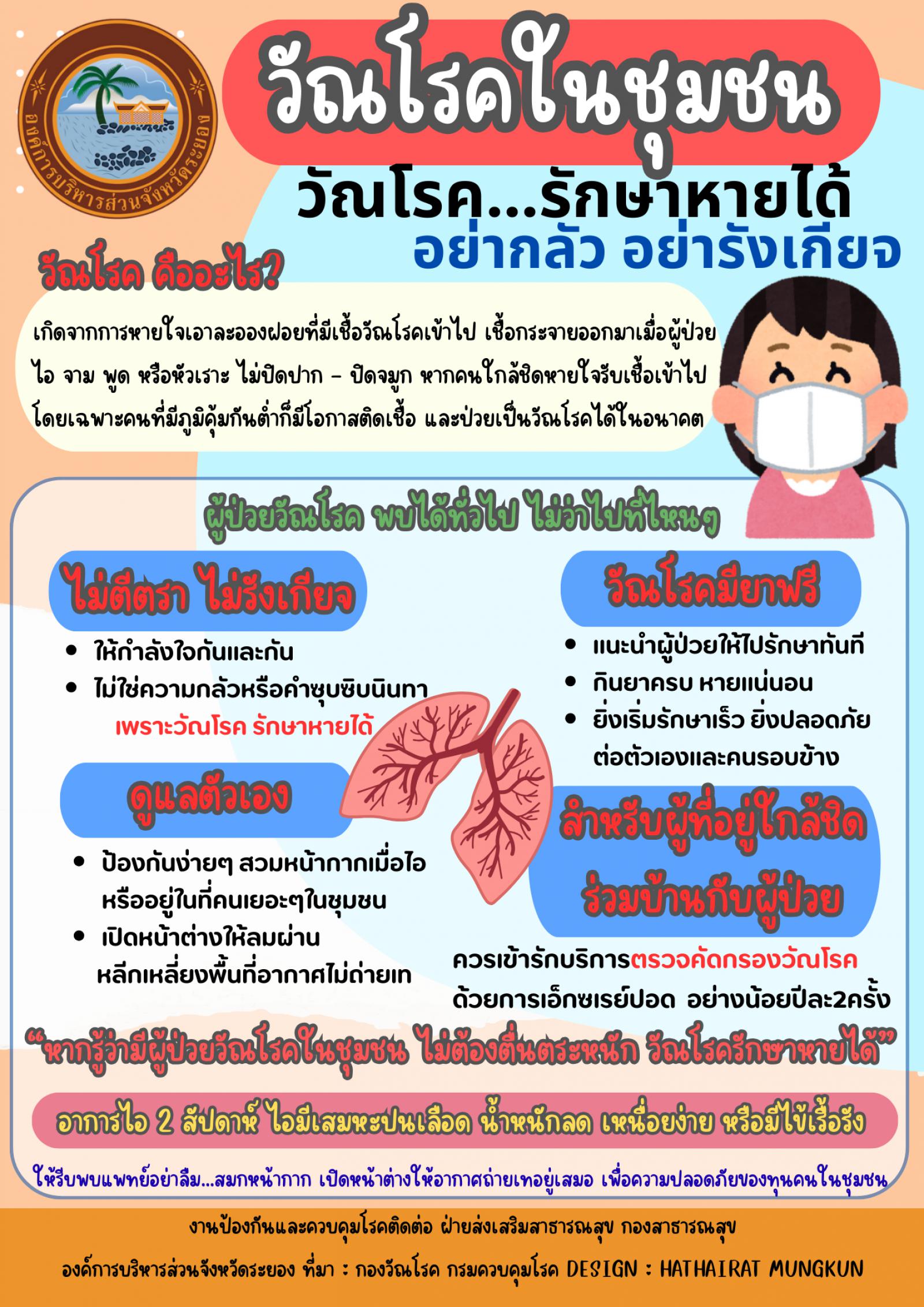ด้วยวัณโรคยังเป็นปัญหาสาธารณสุขที่สำคัญของประเทศไทย ซึ่งองค์การอนามัยโลก มีเป้าหมายยุติวัณโรคในปี พ.ศ. ๒๕๗๘ ปัจจุบันอุบัติการณ์วัณโรคประเทศไทย มีผู้ป่วยวัณโรค ๑๕๕ ต่อประชากรแสนคน คาดการณ์ว่าใน ๑ ปี จะมีคนป่วยวัณโรค ๑๑๑,๐๐๐ คน โดยกระทรวงสาธารณสุข มีเป้าหมายวัณโรค คือ ลดอัตราตายร้อยละ ๙๕ และลดผู้ป่วยรายใหม่ร้อยละ ๙๐ (ที่มา: กองวัณโรค กรมควบคุมโรค กระทรวงสาธารณสุข ซึ่งสถานการณ์วัณโรคในจังหวัดระยอง พบรายงานวัณโรครายใหม่ ข้อมูลระหว่างวันที่ ๑ มกราคม ๒๕๖๘ ถึง ๑๙ สิงหาคม ๒๕๖๘ จำนวน ๖๕๑ ราย (ที่มา: สถานการณ์วัณโรค ประเทศไทย (Dashboard) กองวัณโรค กระทรวงสาธารณสุข) ทั้งนี้ วัณโรคเป็นโรคที่สามารถแพร่กระจายได้ทางอากาศโดยผ่านทางการไอ จาม การพูดคุย และการหายใจ แต่หากรู้เร็ว สามารถรักษาหายได้ และไม่แพร่กระจายไปยังผู้อื่น รายละเอียดปรากฏตามเอกสารที่แนบมาพร้อมนี้