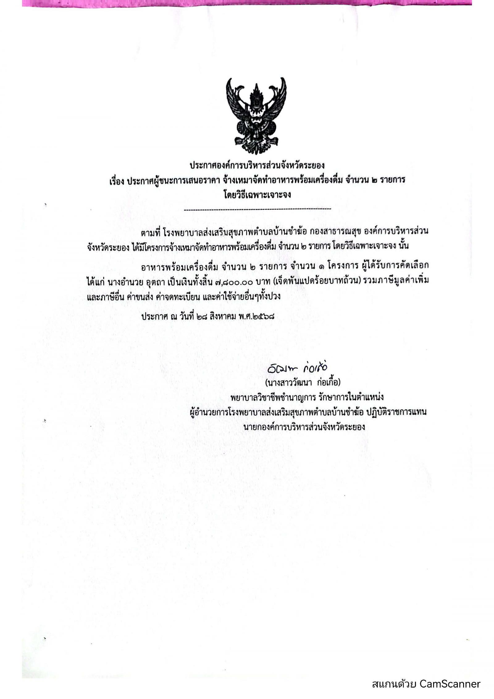 📌ประกาศผู้ชนะการเสนอราีคา จ้างเหมาจัดทำทำเนียบองค์การบริหารส่วนจัหวัดระยอง