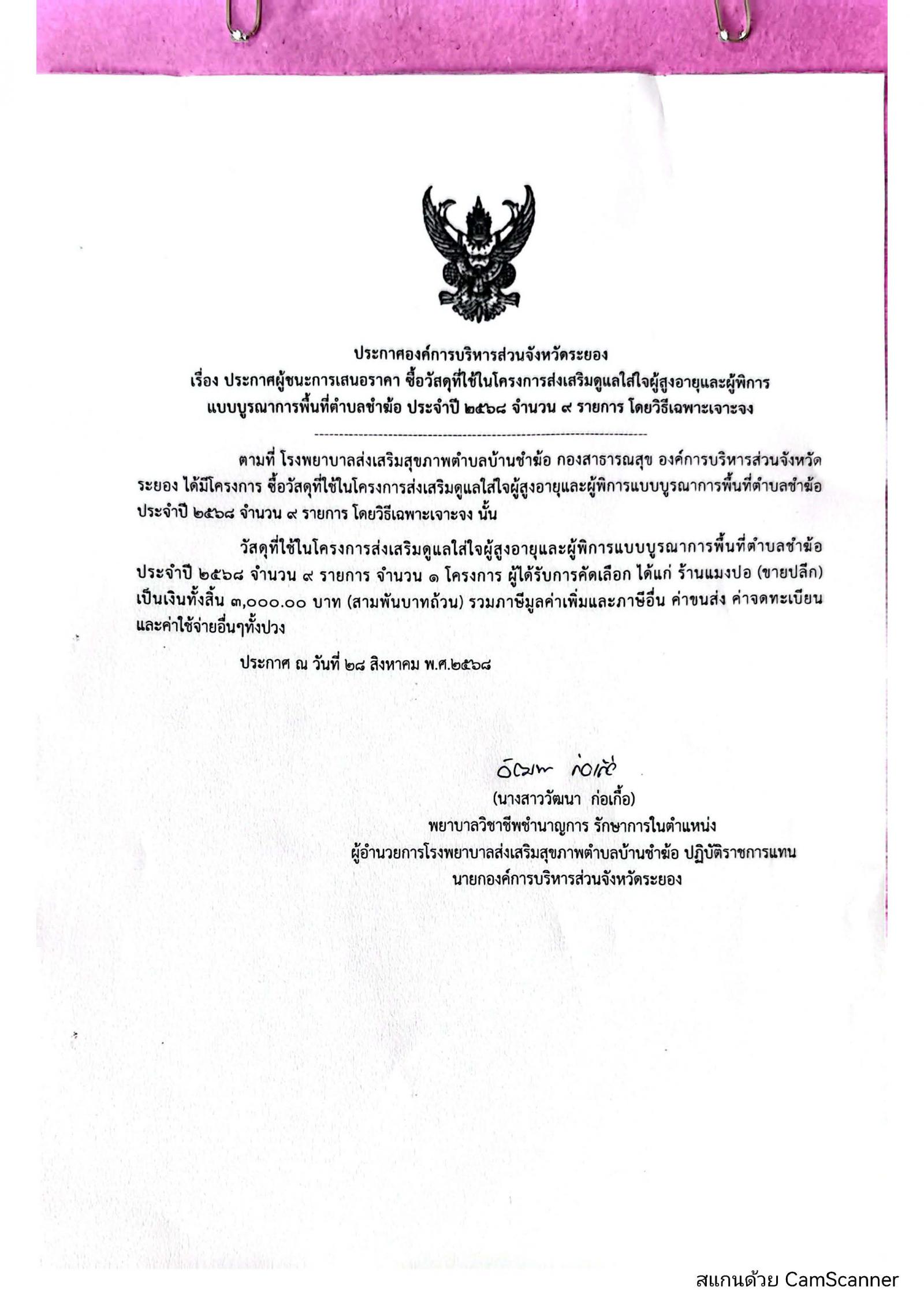 📌ประกาศผู้ชนะการเสนอราีคา จ้างเหมาจัดทำทำเนียบองค์การบริหารส่วนจัหวัดระยอง