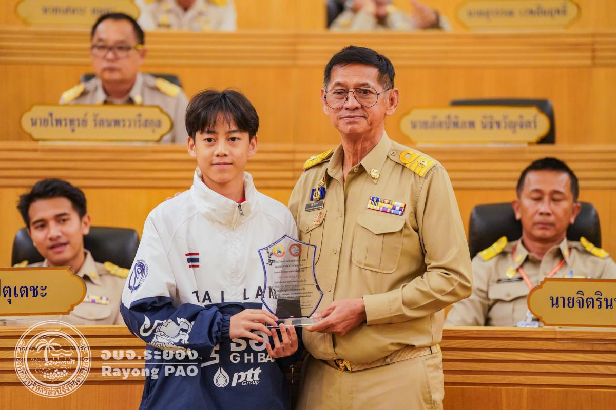 วันที่ 27 สิงหาคม 2568 เวลา 09.30 น. ณ ห้องประชุมสภาองค์การบริหารส่วนจังหวัดระยอง ชั้น 11 นายปิยะ ปิตุเตชะ นายกองค์การบริหารส่วนจังหวัดระยอง เป็นประธานในพิธีมอบโล่ประกาศเกียรติคุณให้แก่นักกีฬาคาราเต้โด และนักกีฬาเทควันโด สังกัดสมาคมกีฬาแห่งจังหวัดระยอง ซึ่งได้รับการคัดเลือกเป็นตัวแทนทีมชาติไทย เข้าร่วมการแข่งขันรายการ South East Asian Championship 2025 ณ ประเทศบรูไน ประเทศออสเตรีย และประเทศมาเลเซีย โดยมีวัตถุประสงค์เพื่อเป็นการเชิดชูเกียรติและสร้างขวัญกำลังใจให้แก่นักกีฬาที่สร้างชื่อเสียงให้กับจังหวัดระยองและประเทศไทยในเวทีระดับนานาชาติ