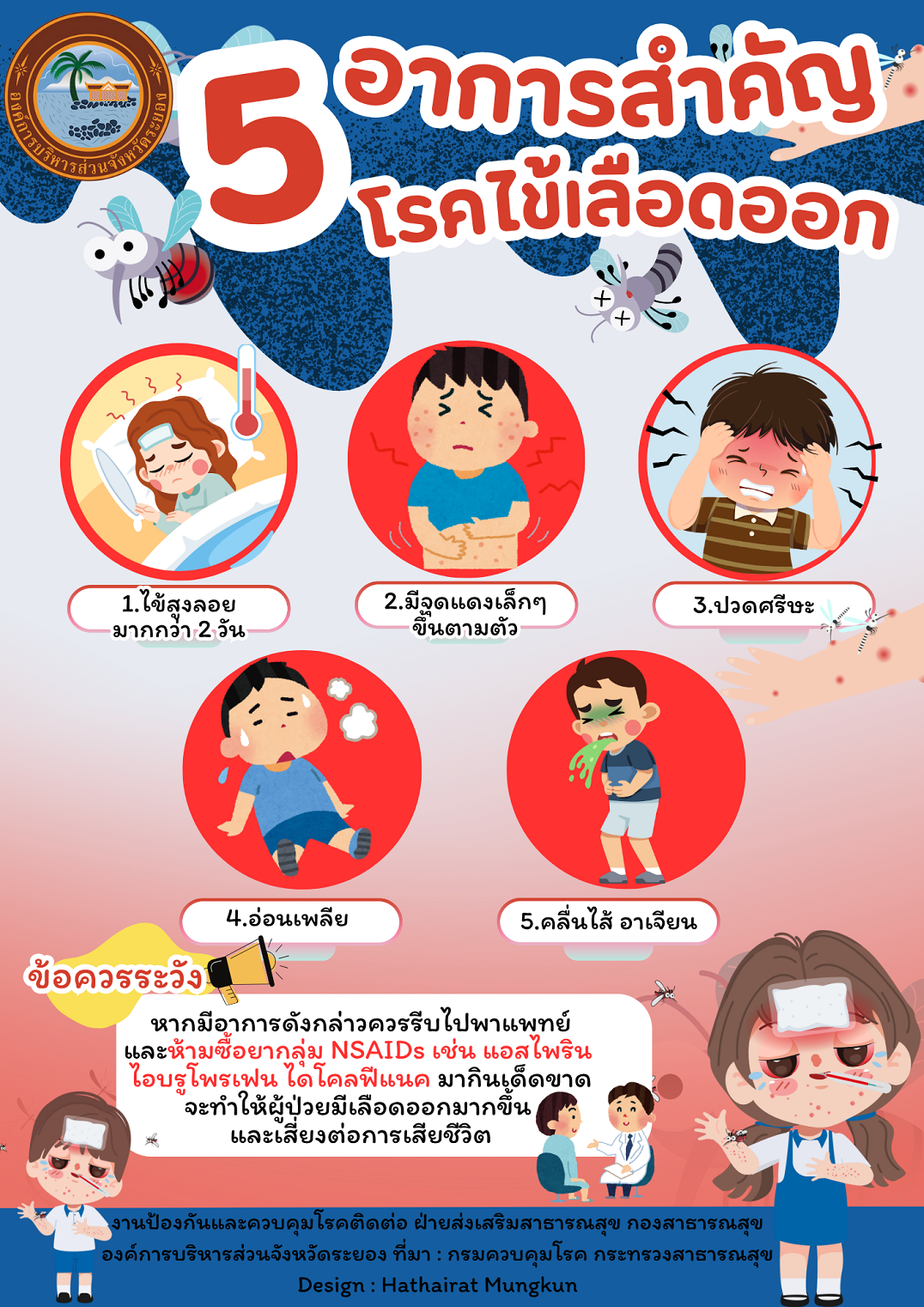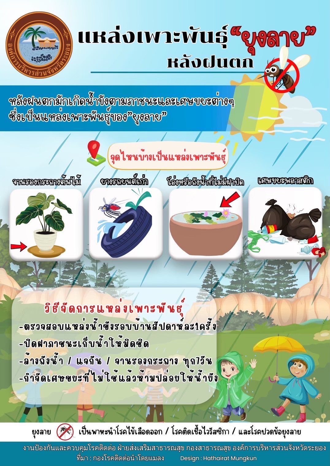 สื่อประชาสัมพันธ์ “แหล่งเพาะพันธุ์ยุงลายหลังฝนตก” และ “๕ อาการสำคัญโรคไข้เลือดออก”