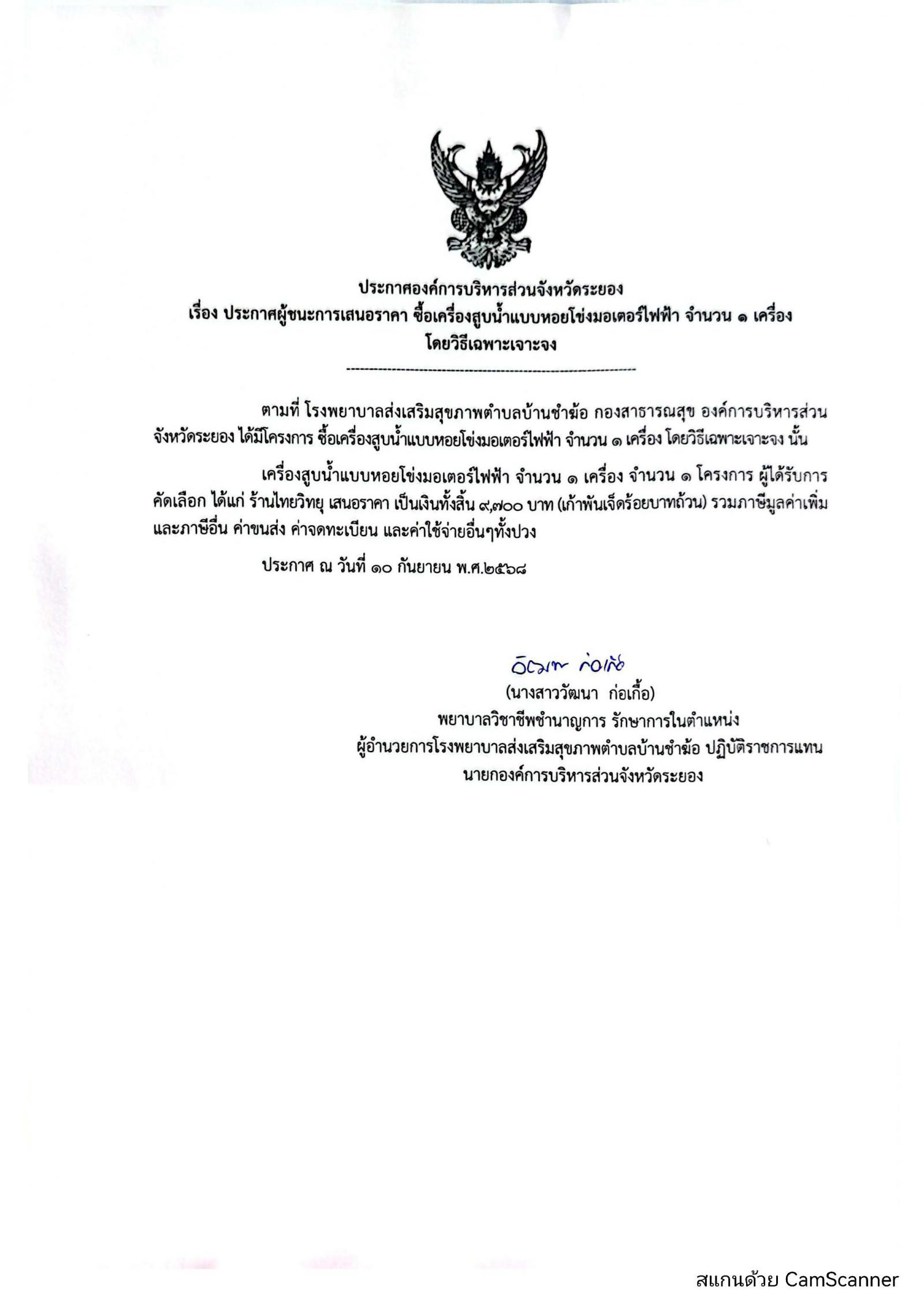 📌ประกาศผู้ชนะการเสนอราีคา จ้างเหมาจัดทำทำเนียบองค์การบริหารส่วนจัหวัดระยอง