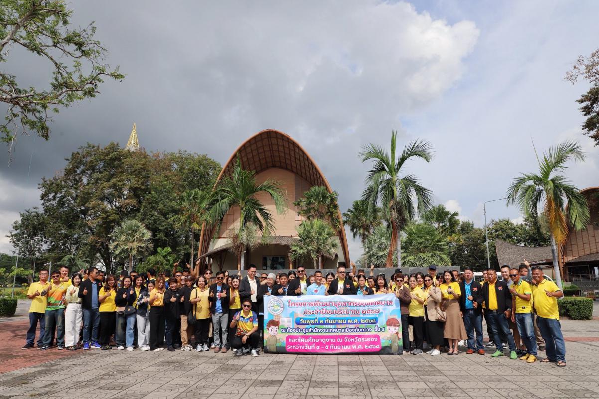 วันศุกร์ที่ ๕ กันยายน ๒๕๖๘ เวลา ๐๙.๐๐ น. ยินดีต้อนรับคณะเทศบาลเมืองทับกวาง จังหวัดสระบุรี เข้าสู่เมืองพระมหาชนก ซึ่งเป็นส่วนหนึ่งขององค์การบริหารส่วนจังหวัดระยอง ต้อนรับโดยเจ้าหน้าที่ เข้าสู่สถานที่แรกนั่นคือ อาคารอบรมและการเรียนรู้ อาคารปูทะเลย์มหาวิชชาลัย ซึ่งด้านในต้อนรับโดยพิธีกร กล่าวต้อนรับทุกท่าน ร่วมทำกิจกรรมแห่งความดี ชมวิดีโอที่ฉายเรื่องราวเกี่ยวกับเมืองพระมหาชนก รับฟังบรรยายแนวทางแห่งความดี โดย นายวราวุธ ปิ่นเงิน ผู้ทรงคุณวุฒิด้านปรัชญาเศรษฐกิจพอเพียง อดีตรองผู้ว่าราชการจังหวัดระยอง กิจกรรมถัดมากิจกรรมกล่าวปฏิญาณ จะปกป้องสถาบันชาติศาสนา พระมหากษัตริย์ เพื่อความจงรักภักดี และร่วมใจกันร้องบทเพลงสรรเสริญพระบารมี กิจกรรมถัดมา นั่งรถรางชมวิวบรรยากาศ ภายในโครงการศูนย์บริการการพัฒนาปลวกแดงตามพระราชดำริจังหวัดระยอง และเข้าชมอาคารพระมหาชนก สูง ๗๐ เมตร ซึ่งด้านในจะมีนิทรรศการ ที่เดียวในประเทศประเทศไทย ที่รวบรวมจิตวิญญาณน้ำพระทัยของในหลวงรัชกาล ๙ และชมจุดชมวิวในมุมสูง สวยงามประทับใจ ณ อาคารพระมหาชนก อ่างเก็บน้ำดอกกราย อำเภอปลวกแดง จังหวัดระยอง