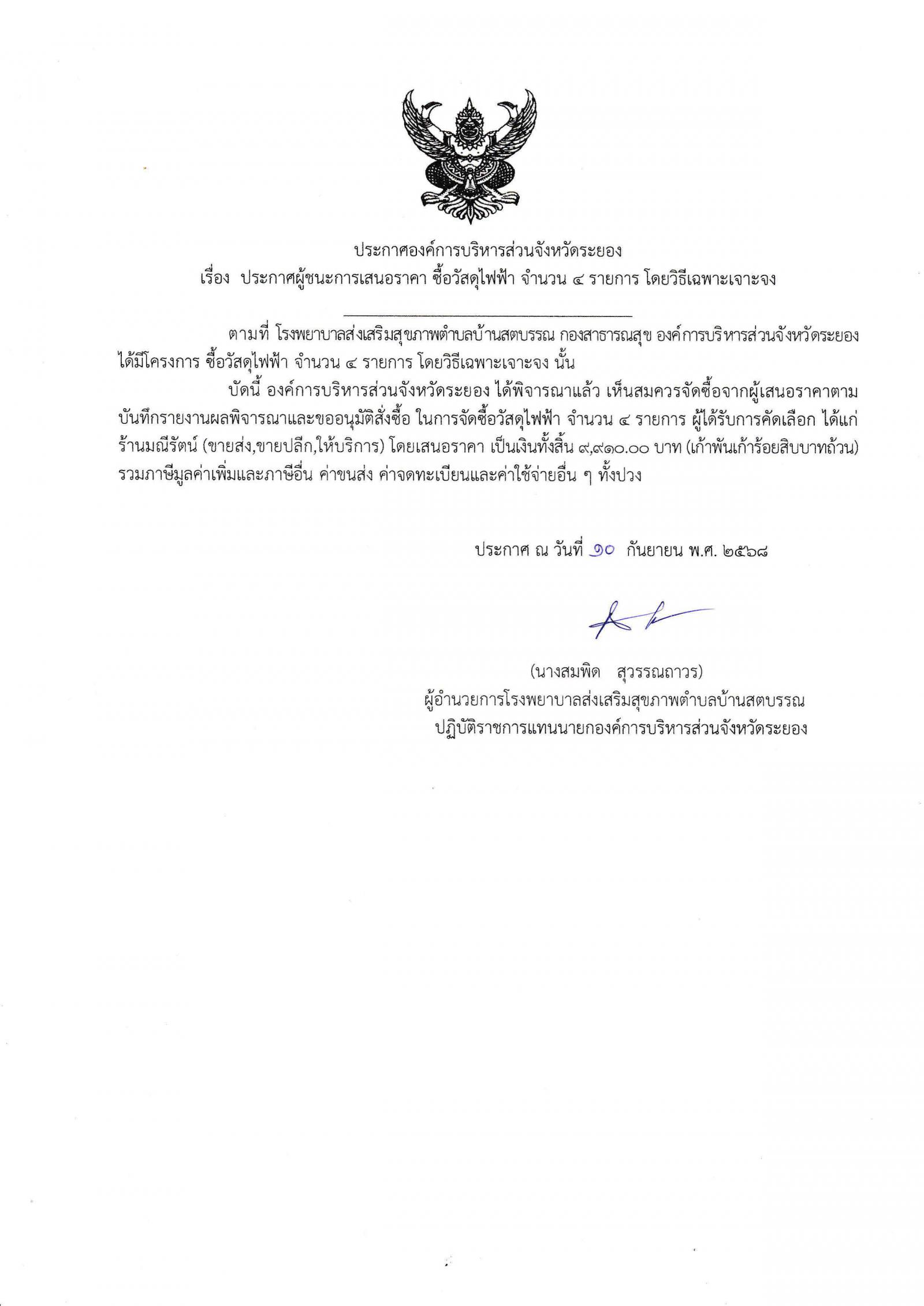 📌ประกาศผู้ชนะการเสนอราีคา จ้างเหมาจัดทำทำเนียบองค์การบริหารส่วนจัหวัดระยอง