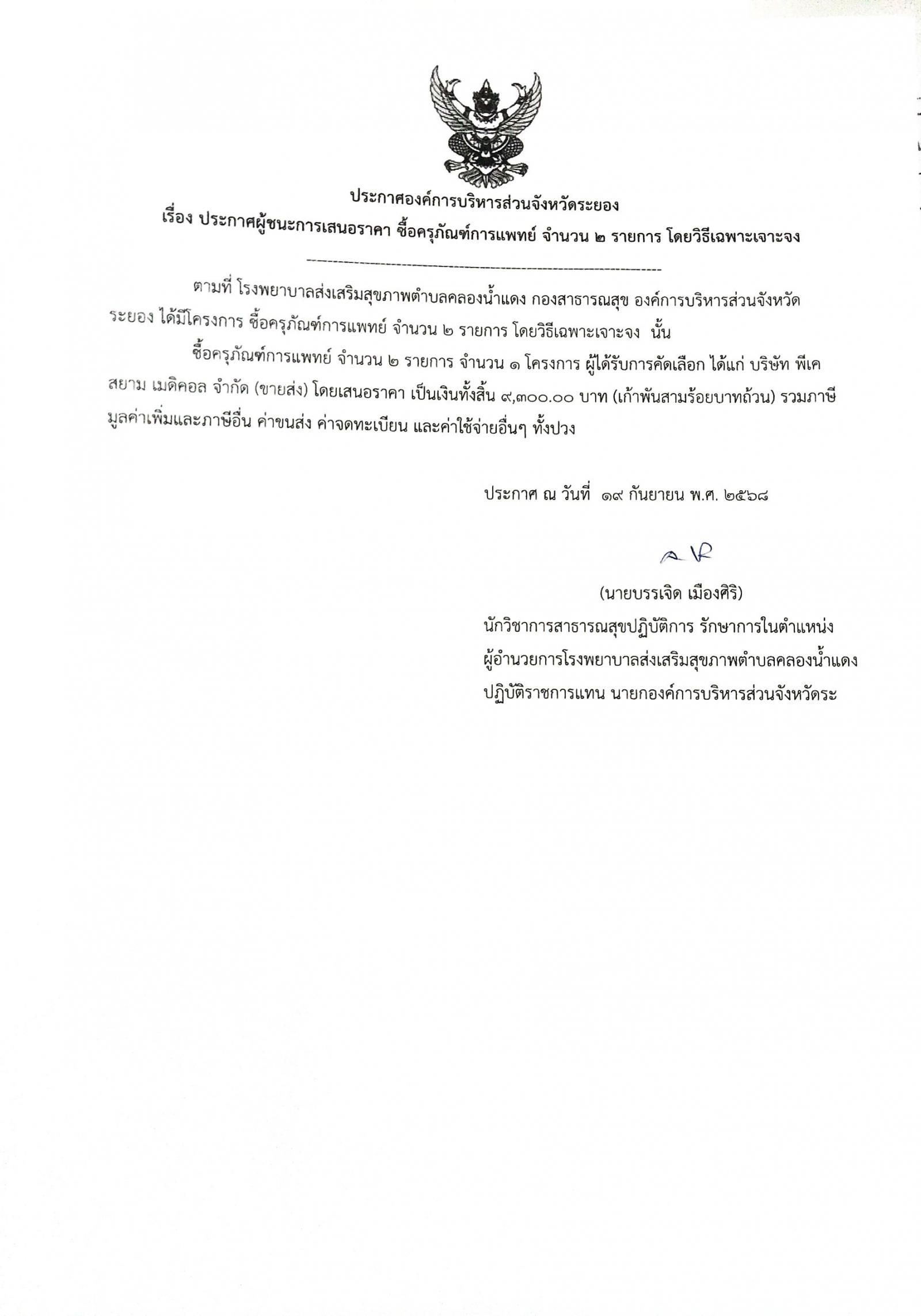 📌ประกาศผู้ชนะการเสนอราีคา จ้างเหมาจัดทำทำเนียบองค์การบริหารส่วนจัหวัดระยอง