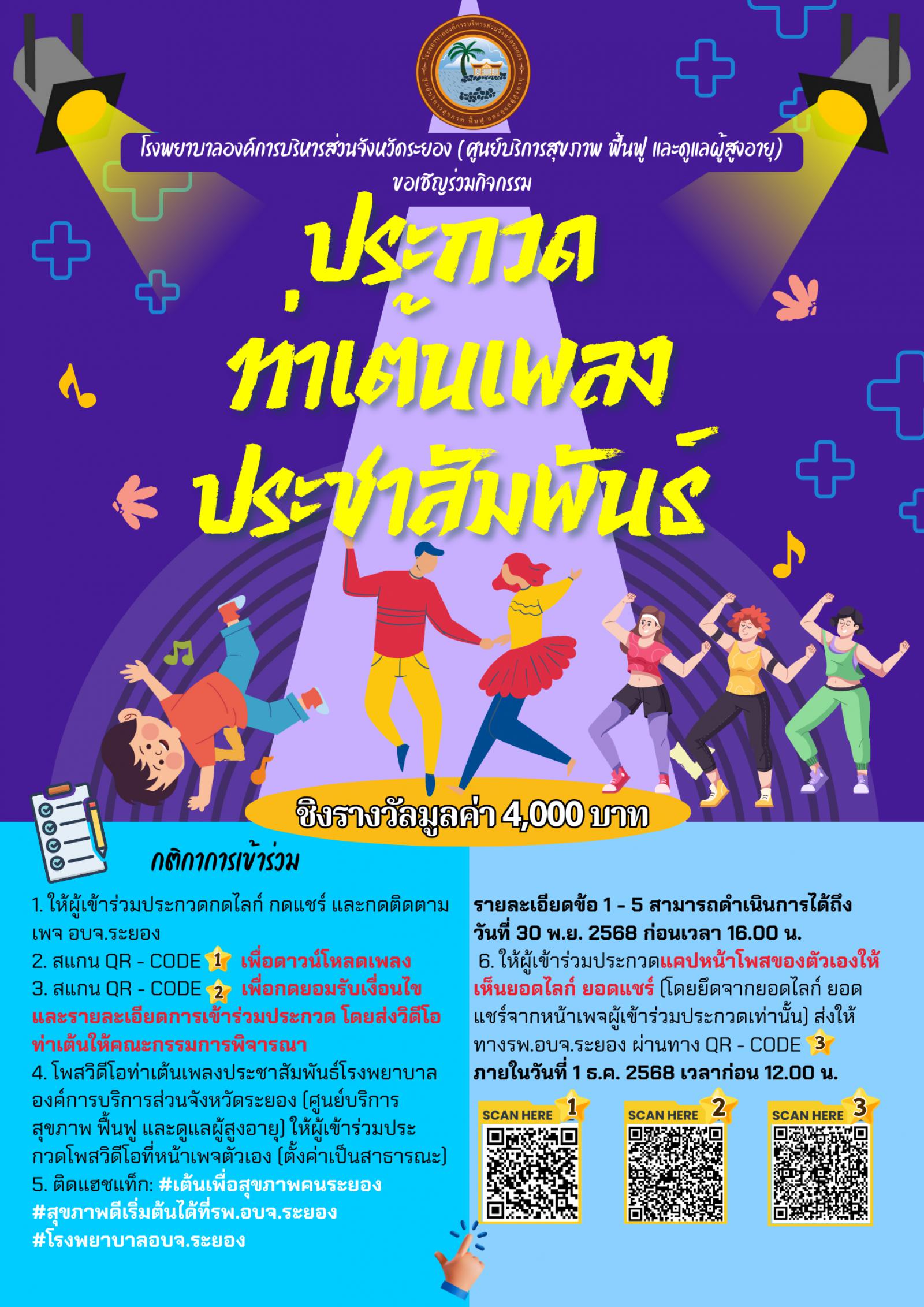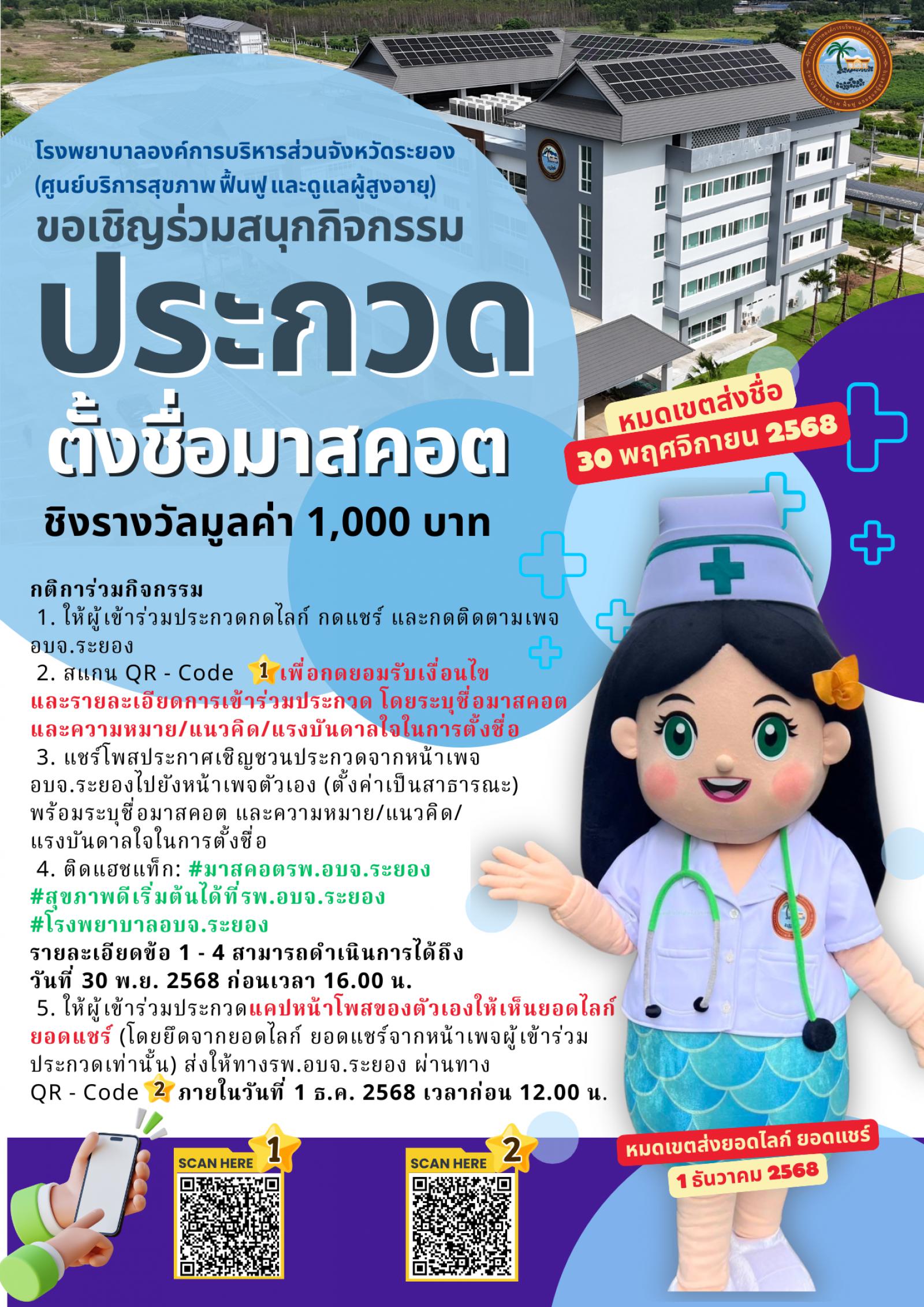 ประชาสัมพันธ์กิจกรรมประกวดตั้งชื่อมาสคอต และท่าเต้นประกอบเพลงประชาสัมพันธ์โรงพยาบาลองค์การบริหารส่วนจังหวัดระยอง (ศูนย์บริการสุขภาพ ฟื้นฟู และดูแลผู้สูงอายุ)