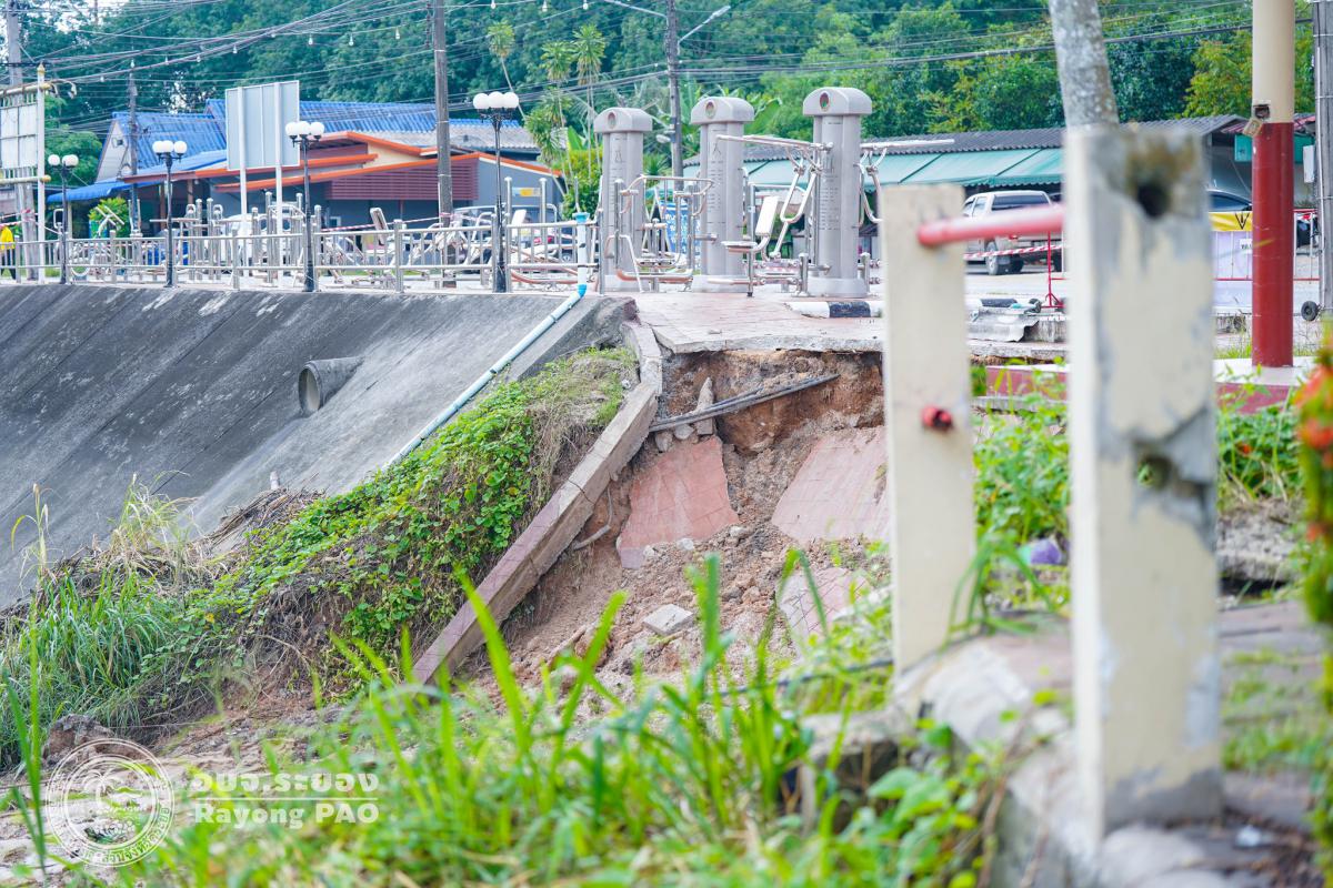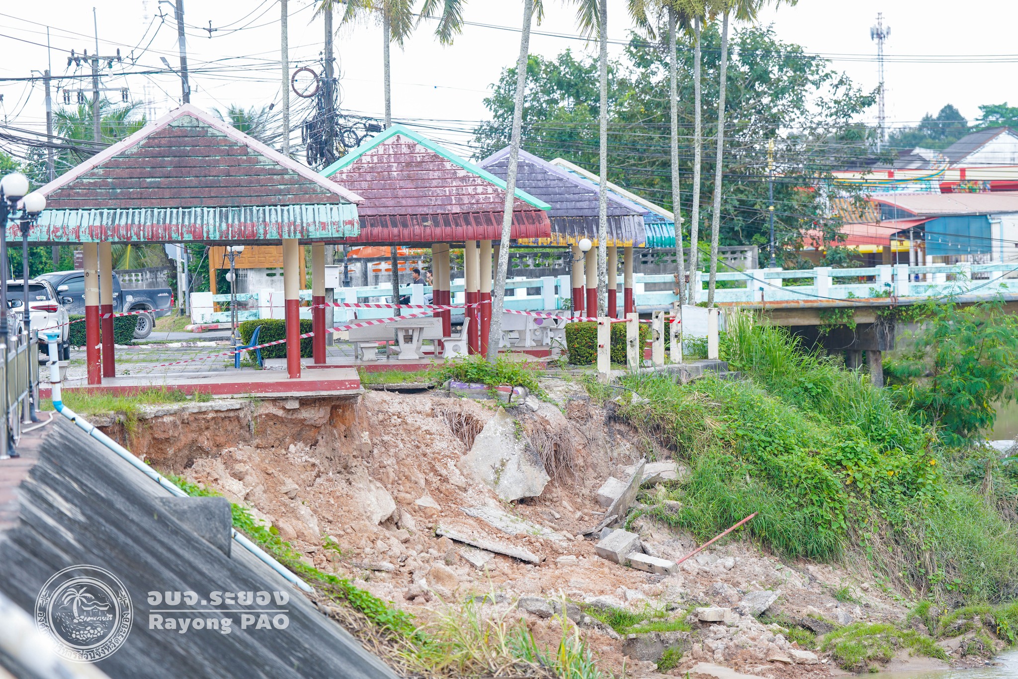 อบจ.ระยอง ลงพื้นที่ตรวจสอบบริเวณคอสะพานใกล้วัดไผ่ล้อม ตำบลบ้านค่าย กรณีแนวตลิ่งบริเวณสะพานเกิดการทรุดตัว