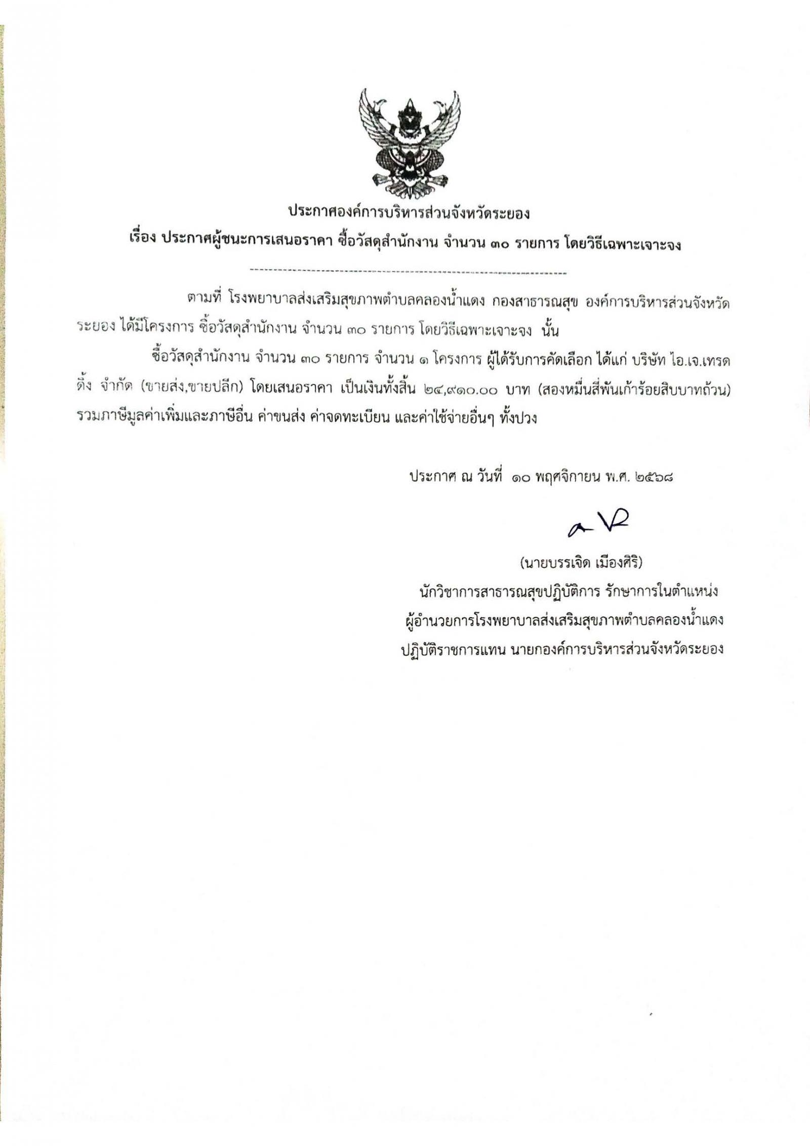 📌ประกาศผู้ชนะการเสนอราีคา จ้างเหมาจัดทำทำเนียบองค์การบริหารส่วนจัหวัดระยอง