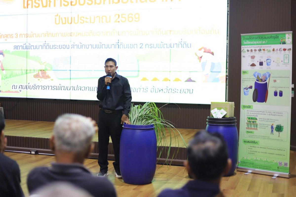 วันอังคารที่ ๑๒ พฤศจิกายน พ.ศ. ๒๕๖๘ โครงการอบรมหมอดินอาสา ปีงบประมาณ ๒๕๖๘ หลักสูตร ๓ การพัฒนาศักยภาพของหมอดินอาสาด้านการพัฒนาที่ดินตามบริบทท้องถิ่น สถานีพัฒนาที่ดินระยอง สำนักงานพัฒนาที่ดินเขต ๒ กรมพัฒนาที่ดิน ซึ่งโครงการครั้งนี้ มีกิจกรรมที่ดีเกี่ยวกับดิน ซึ่งมีความสำคัญต่อการเพาะปลูก และให้ความสำคัญกับหมอดินอาสา เกษตรกรที่เป็นตัวแทนของกรมพัฒนาที่ดินในพื้นที่ ทำหน้าที่เป็นเครือข่ายในการช่วยเหลือดูแลรักษาทรัพยากรดินในชุมชน นอกจากนี้ยังมีการสาธิตการ ผลิตสารควบคุมแมลงศัตรูพืช และกิจกรรมที่ดีเกี่ยวกับการพัฒนาที่ดิน ถัดมาร่วมทำกิจกรรมแห่งความดี กิจกรรมรักชาติไทย กิจกรรมกล่าวปฏิญาณ จะปกป้องสถาบันชาติศาสนา พระมหากษัตริย์ เพื่อความจงรักภักดี และเข้าชมอาคารพระมหาชนก ที่มีนิทรรศการรวบรวมจิตวิญญาณน้ำพระทัยของในหลวงรัชกาลที่ ๙ และ ชมวิวที่สวยที่สุดในจังหวัดระยอง