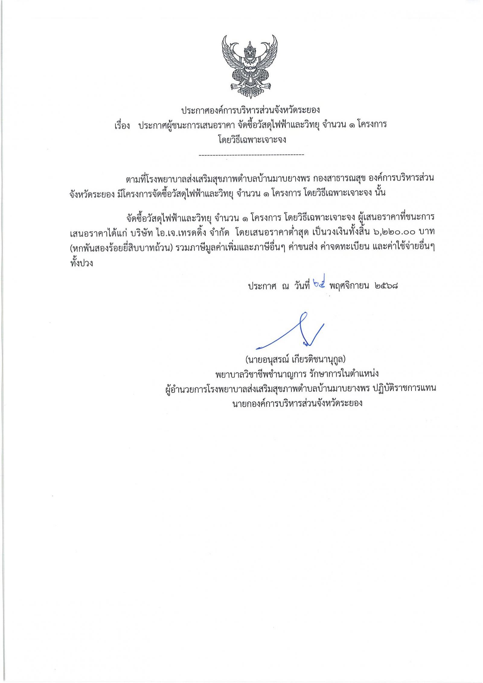 📌ประกาศผู้ชนะการเสนอราีคา จ้างเหมาจัดทำทำเนียบองค์การบริหารส่วนจัหวัดระยอง