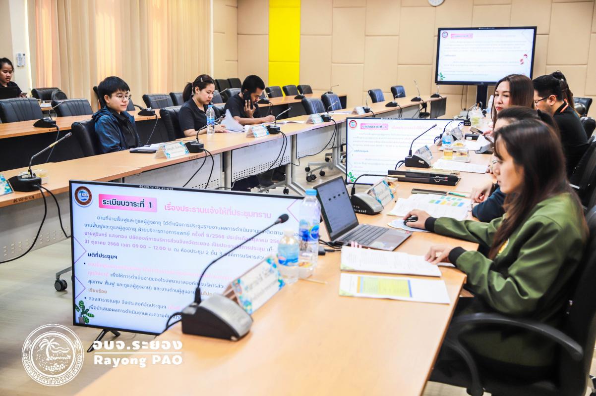 วันที่ 27 พฤศจิกายน 2568 เวลา 13.30 น. นายสุรินทร์ แสงทอง ปลัดองค์การบริหารส่วนจังหวัดระยอง ร่วมประชุม “รายงานผลการดำเนินงานและติดตามงานของงานฟื้นฟูและดูแลผู้สูงอายุ ฝ่ายบริการทางการแพทย์ ครั้งที่ 11/2568 ประจำเดือนพฤศจิกายน 2568” ณ ห้องประชุม ชั้น 3 อบจ.ระยอง