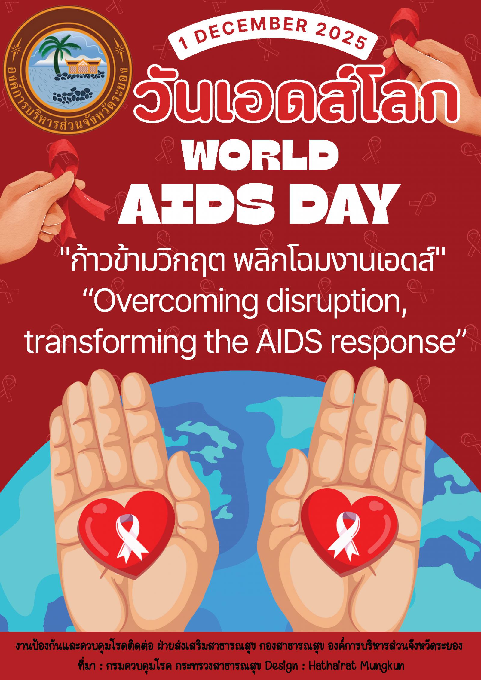 ด้วยองค์การอนามัยโลกกำหนดให้วันที่ ๑ ธันวาคม ของทุกปี เป็นวันเอดส์โลก(World AIDS Day) กระทรวงสาธารณสุข จึงได้รณรงค์สร้างความตระหนักถึงความสำคัญของการป้องกันโรคเอดส์ ยอมรับและเข้าใจผู้ติดเชื้อเอชไอวีทั่วโลกและให้ทุกคนได้ตระหนักถึงอันตรายจากการติดต่อและการเจ็บป่วยด้วยโรคเอดส์ รวมทั้งเผยแพร่ความรู้เกี่ยวกับโรคเอดส์ให้กว้างขวางยิ่งขึ้นและสามารถนำความรู้ไปใช้ในชีวิตประจำวันได้อย่างถูกต้องปลอดภัย และทำการเสริมสร้างและสนับสนุนให้มีมาตรการการป้องกันให้มากขึ้นในสังคมทุกระดับ กระทรวงสาธารณสุข จึงขอเชิญหน่วยงานทุกภาคส่วนร่วมกันเรียกร้องให้มีภาวะผู้นำทางการเมืองอย่างต่อเนื่อง การร่วมมือระหว่างประเทศ และแนวทางที่ยึดหลักสิทธิมนุษธชน เพื่อยุติเอดส์ภายในปี พ.ศ. ๒๕๗๓ โดยในปี พ.ศ. ๒๕๖๘ มีคำขวัญวันเอดส์โลก คือ “ก้าวข้ามวิกฤต พลิกโฉมงานเอดส์” (Overcoming disruption, transforming the AIDS response) (ข้อมูล : ศูนย์รวมข้อมูลสถานการณ์ด้านเอชไอวีของประเทศไทย) รายละเอียดปรากฏตามเอกสารที่แนบมาพร้อมนี้