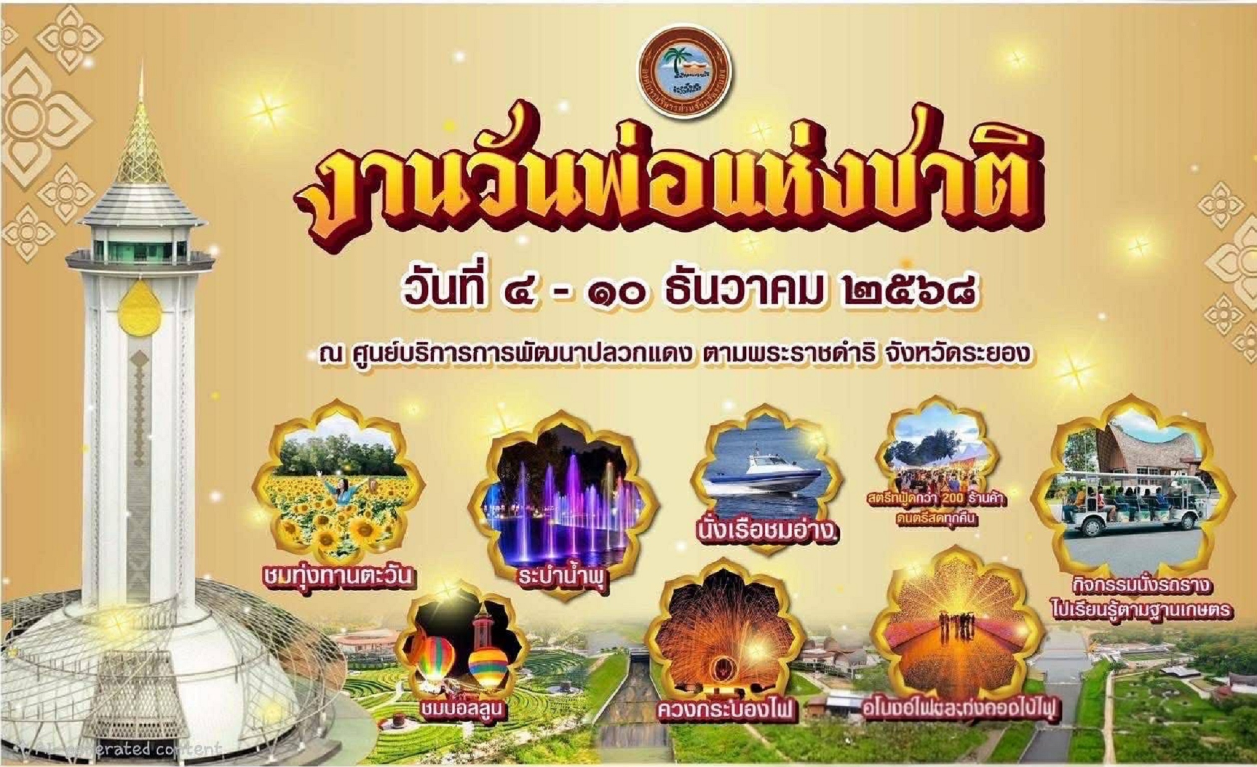 เชิญชวนเที่ยวงานวันพ่อแห่งชาติ ณ ศูนย์บริการการพัฒนาปลวกแดง ตามพระราชดำริ จังหวัดระยอง วันที่ ๔- ๑๐ ธันวาคม ๒๕๖๘