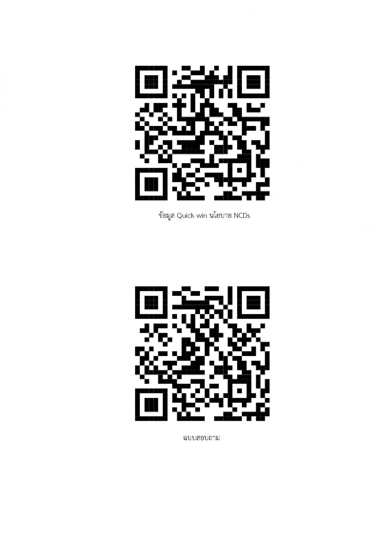 ด้วยกรมอนามัย กระทรวงสาธารณสุข มีหนังสือ ที่ สธ ๐๙๒๓.๐๕ /ว ๘๑๘๘ ลงวันที่ ๒ ธันวาคม ๒๕๖๘ แจ้งว่า สำนักส่งเสริมสุขภาพ ดำเนินการและมีบทบาทสำคัญในการขับเคลื่อนนโนบาย Quick Win ของกระทรวงสาธารณสุข เพื่อให้การดำเนินงานเป็นไปอย่างมีประสิทธิภาพและสอดคล้องกับสถานการณ์โรคไม่ติดต่อเรื้อรัง (NCDs) ที่ส่งผลกระทบต่อประชากรวัยทำงานและวัยก่อนสูงอายุของประเทศในปัจจุบัน โดยเฉพาะการขับเคลื่อนภารกิจหลักของกระทรวงสาธารณสุข ในการดำเนินงานตามเป้าหมายสุขภาพ เพื่อให้ประชาชนมีความรอบรู้ด้านสุขภาพ สามารถดูแลตนเองได้อย่างยั่งยืน พร้อมทั้ง สร้างสภาพแวดล้อม ที่เอื้อต่อสุขภาพและการป้องกันโรคของคนไทยให้เห็นผลอย่างเป็นรูปธรรมและรวดเร็ว จึงขอประชาสัมพันธ์และแจ้งเจ้าหน้าที่ในสังกัด เพื่อให้ความร่วมมือในการตอบแบบสอบถามโครงการส่งเสริมสุขภาพวัยทำงานและวัยก่อนสูงอายุ ผ่านทาง QR Code