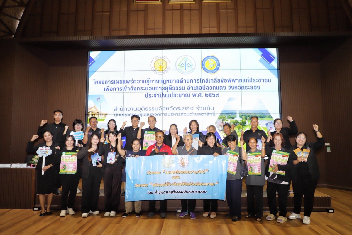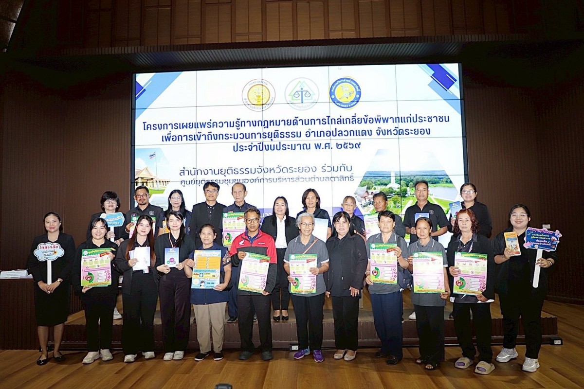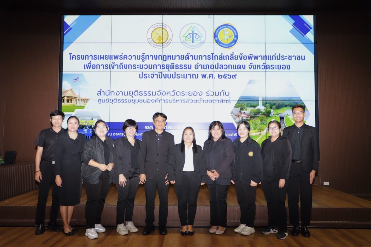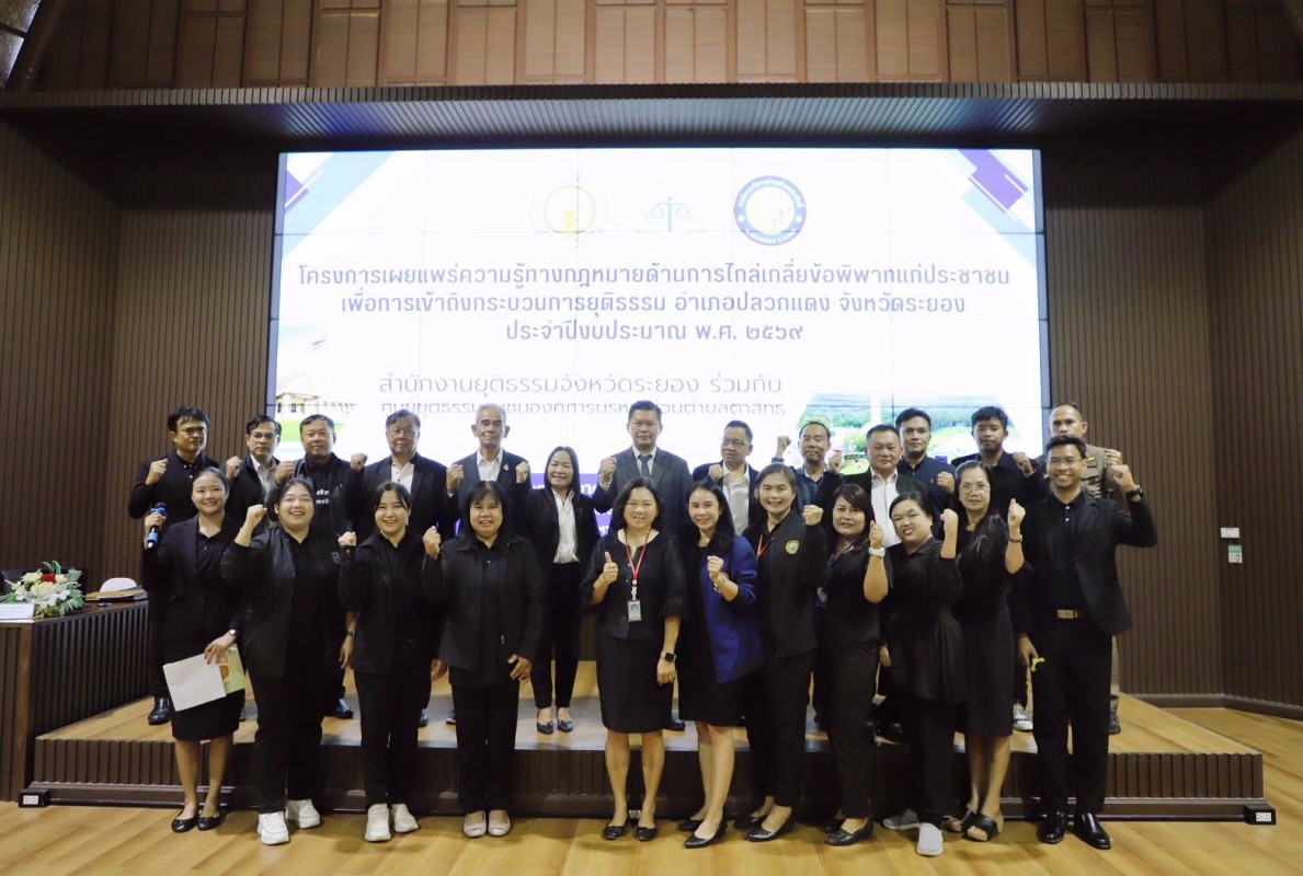 วันที่ 23 ธันวาคม 2568 ณ อาคารปูทะเลย์มหาวิชชาลัย (เมืองพระมหาชนก) โดยมีท่านสมศักดิ์ เกตุสาคร ผู้ทรงคุณวุฒิเฉพาะทางด้านกฎหมายท้องถิ่น มาเป็นประธานกล่าวเปิดโครงการ และมีนางสาวคนึงนิตย์ กมุทชาติ หัวฝ่ายส่งเสริมการท่องเที่ยวพร้อมด้วยนายฤทธิเดช เกลี้ยงเกตุ หัวหน้าฝ่ายนิติกร มาร่วมในพิธี ซึ่งมีท่านสุพิชชา พันทิอั้ว ผู้อำนวยการสำนักงานคุมประพฤติจังหวัดระยอง ปฎิบัติหน้าที่ยุติธรรมจังหวัดระยอง เป็นผู้กล่าวรายงาน โดยกิจกรรมในช่วงเช้า มีการบรรยายอบรมในหัวข้อ การช่วยเหลือประชาชนเรื่องการแก้ไขปัญหาหนี้สิน,การบังคับคดี นิติกรรมสัญญา,ภารกิจสำนักงานยุติธรรมจังหวัดระยอง,การป้องกันอาชญากรรมในชุมชน และมาต่อกันที่กิจกรรมในช่วงบ่าย มีการบรรยายอบรมในหัวข้อ กองทุนยุติธรรมกับการช่วยเหลือประชาชน,กรมคุ้มครองสิทธิและเสรีภาพกับการช่วยเหลือประชาชน,แนวทางการให้ความช่วยเหลือประชาชนเชิงรุก โดยโครงการนี้ถือเป็นโครงการที่ให้คำแนะนำและแนวทางเพื่อการแก้ไขปัญหาของประชาชน ที่ได้รับความเดือดร้อนในเรื่องกฎหมายให้เข้าใจได้มากยิ่งขึ้น