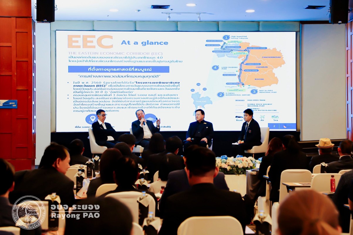 ซึ่งโครงการนี้จัดขึ้นเพื่อเผยแพร่ทิศทางการพัฒนาเชิงยุทธศาสตร์ของเขตพัฒนาพิเศษภาคตะวันออก (EEC) โดยเปิดโอกาสให้ผู้บริหารระดับสูง และภาคส่วนที่เกี่ยวข้องได้รับทราบนโยบายสำคัญตลอดจนแนวโน้มการพัฒนาเมือง และเศรษฐกิจที่สอดคล้องกับกรอบยุทธศาสตร์ของ สกพอ. เพื่อสนับสนุนบทบาทของสำนักงานคณะกรรมการนโยบายเขตพัฒนาพิเศษภาคตะวันออก (สกพอ.) ในการขับเคลื่อนการลงทุนการยกระดับขีดความสามารถของประเทศ การสร้างระบบนิเวศที่เอื้อต่อการพัฒนาอุตสาหกรรมอนาคตและเมืองคุณภาพ ที่ครอบคลุมและยังยืนยิ่งขึ้น