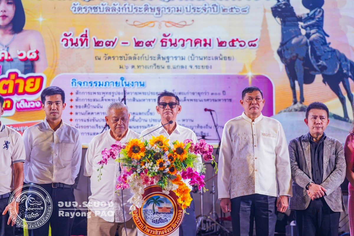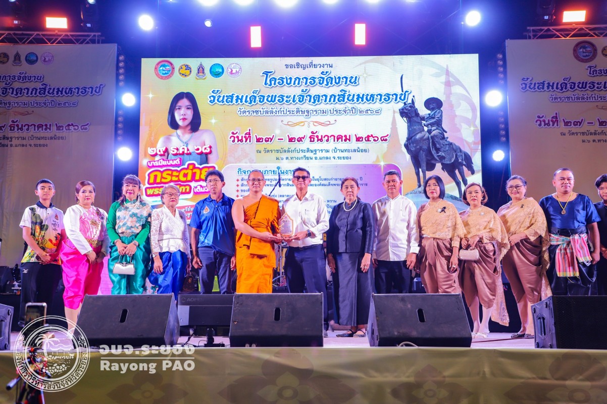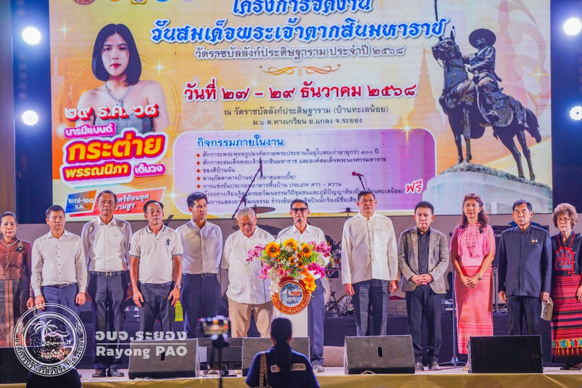 วันที่ 28 ธันวาคม 2568 เวลา 17.00 น. นายปิยะ ปิตุเตชะ นายกองค์การบริหารส่วนจังหวัดระยอง เป็นประธานเปิดโครงการจัดงานวันสมเด็จพระเจ้าตากสินมหาราช วัดราชบัลลังก์ประดิษฐาราม โดยมี นายประสานต์ พฤกษาชาติ รององค์การบริหารส่วนจังหวัดระยอง(2) เป็นผู้กล่าวรายงานวัตถุประสงค์ของการจัดโครงการฯ พร้อมด้วย หัวหน้าส่วนราชการ ผู้อำนวยการกอง ผู้แทนองค์กรปกครองส่วนท้องถิ่น และผู้ที่เกี่ยวข้องเข้าร่วมพิธีเปิดโครงการโดยพร้อมเพรียงกัน