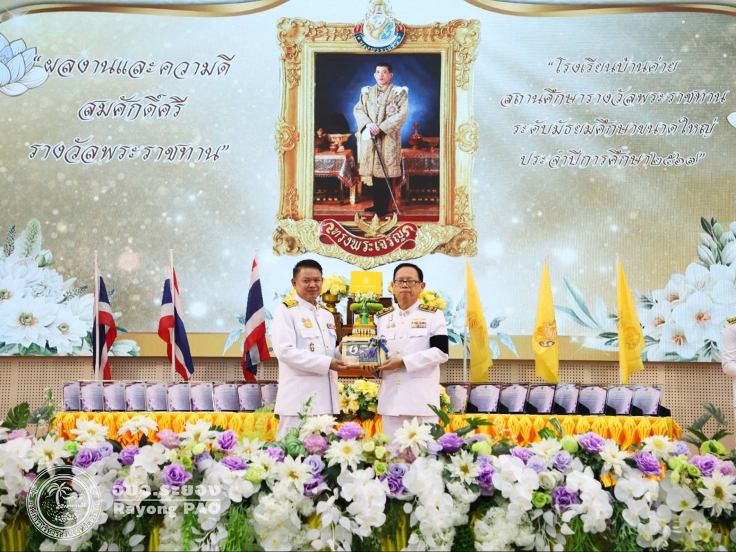 วันที่ 28 มกราคม พ.ศ. 2569 เวลา 09.15 น. นายประสานต์ พฤกษาชาติ รองนายกองค์การบริหารส่วนจังหวัดระยอง เข้าร่วมพิธีฉลองรางวัลพระราชทาน สถานศึกษารางวัลพระราชทาน ระดับมัธยมศึกษาขนาดใหญ่ ประจำปีการศึกษา 2567 พร้อมด้วย คณะผู้บริหารสถานศึกษา หน่วยงานภาครัฐ ภาคเอกชน คณะครู นักเรียน และผู้ที่เกี่ยวข้องเข้าร่วมพิธีอย่างพร้อมเพรียง พิธีดังกล่าวจัดขึ้นเพื่อสำนึกในพระมหากรุณาธิคุณ ของพระบาทสมเด็จพระเจ้าอยู่หัว ที่มีต่อการศึกษาไทย และประกาศเกียรติคุณ สร้างขวัญกำลังใจ เพื่อเป็นแรงขับเคลื่อน และรักษามาตรฐานความเป็นเลิศ เป็นเครื่องยืนยันถึงความมุ่งมั่นของโรงเรียนในการรักษาคุณภาพมาตรฐานการจัดการศึกษาให้ยั่งยืน และพัฒนาโรงเรียนบ้านค่ายให้เป็นสถานศึกษาที่เป็นเลิศทางวิชาการและคุณธรรมต่อไป ณ หอประชุมปิยะวิทยานุสรณ์ โรงเรียนบ้านค่าย อำเภอบ้านค่าย จังหวัดระยอง