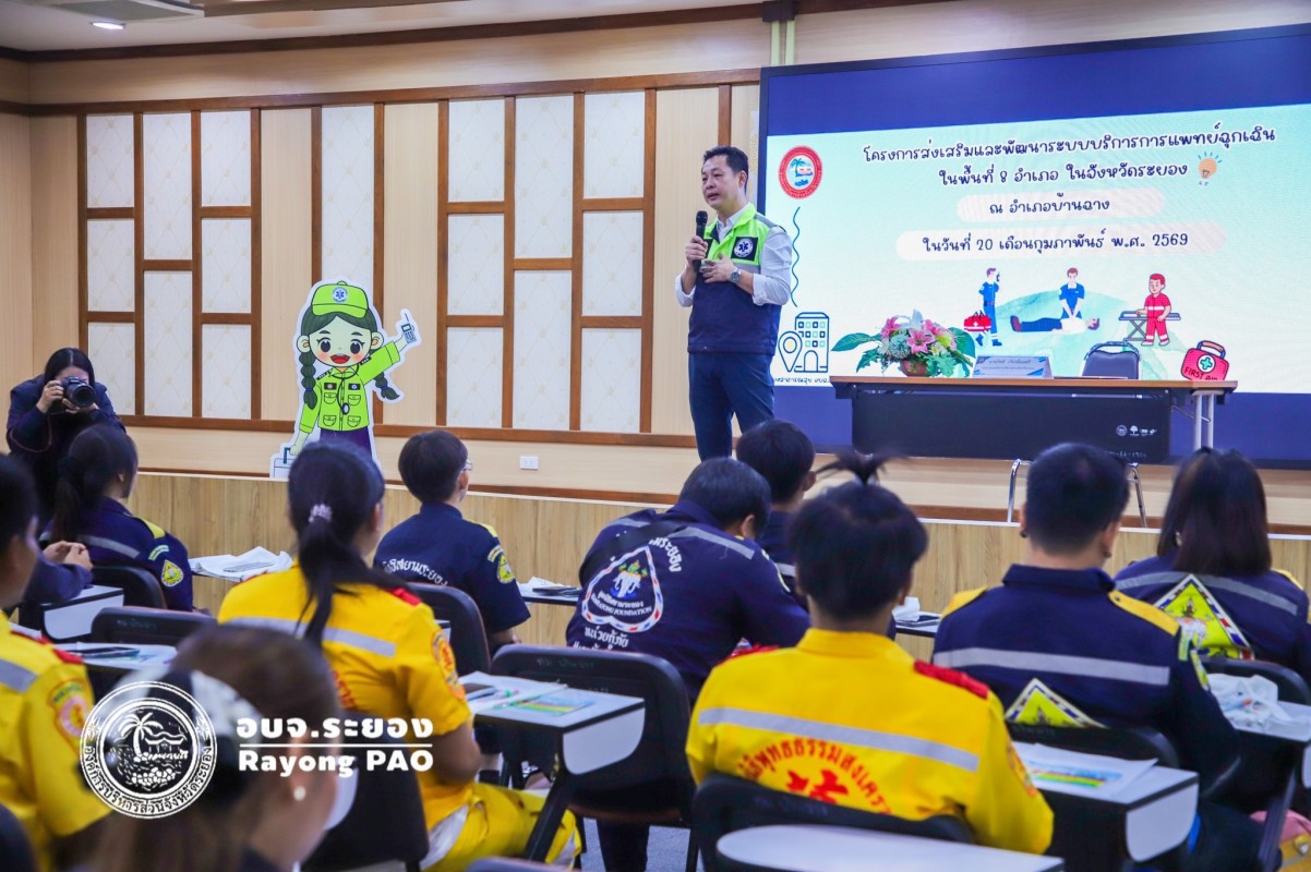 วันที่ 20 กุมภาพันธ์ 2569 เวลา 09.00 น. นายกิตติ เกียรติ์มนตรี รองนายกองค์การบริหารส่วนจังหวัดระยอง (1) เป็นประธานเปิด "โครงการส่งเสริมและพัฒนาระบบบริการการแพทย์ฉุกเฉิน ในพื้นที่ 8 อำเภอ ในจังหวัดระยอง เขตอำเภอบ้านฉาง พร้อมด้วย นายไพรทูรย์ รัตนพรวารีสกุล ส.อบจ. อำเภอเมือง เขต 6, นายณัฐพงศ์ วงษ์พานิชย์ ส.อบจ. อำเภอบ้านฉาง เขต 1, นายสุริยะ ศิริวัฒน์ ผอ.กองสาธารณสุข และเจ้าหน้าที่ที่เกี่ยวข้อง ให้เกียรติเข้าร่วมโครงการฯ โดยมีนายวิชิต เปาอินทร์ ส.อบจ. เขต 2 อำเภอบ้านฉาง กล่าวรายงาน ณ อาคารศูนย์พัฒนาคุณภาพขีวิตผู้สูงอายุ เทศบาลเมืองบ้านฉาง
