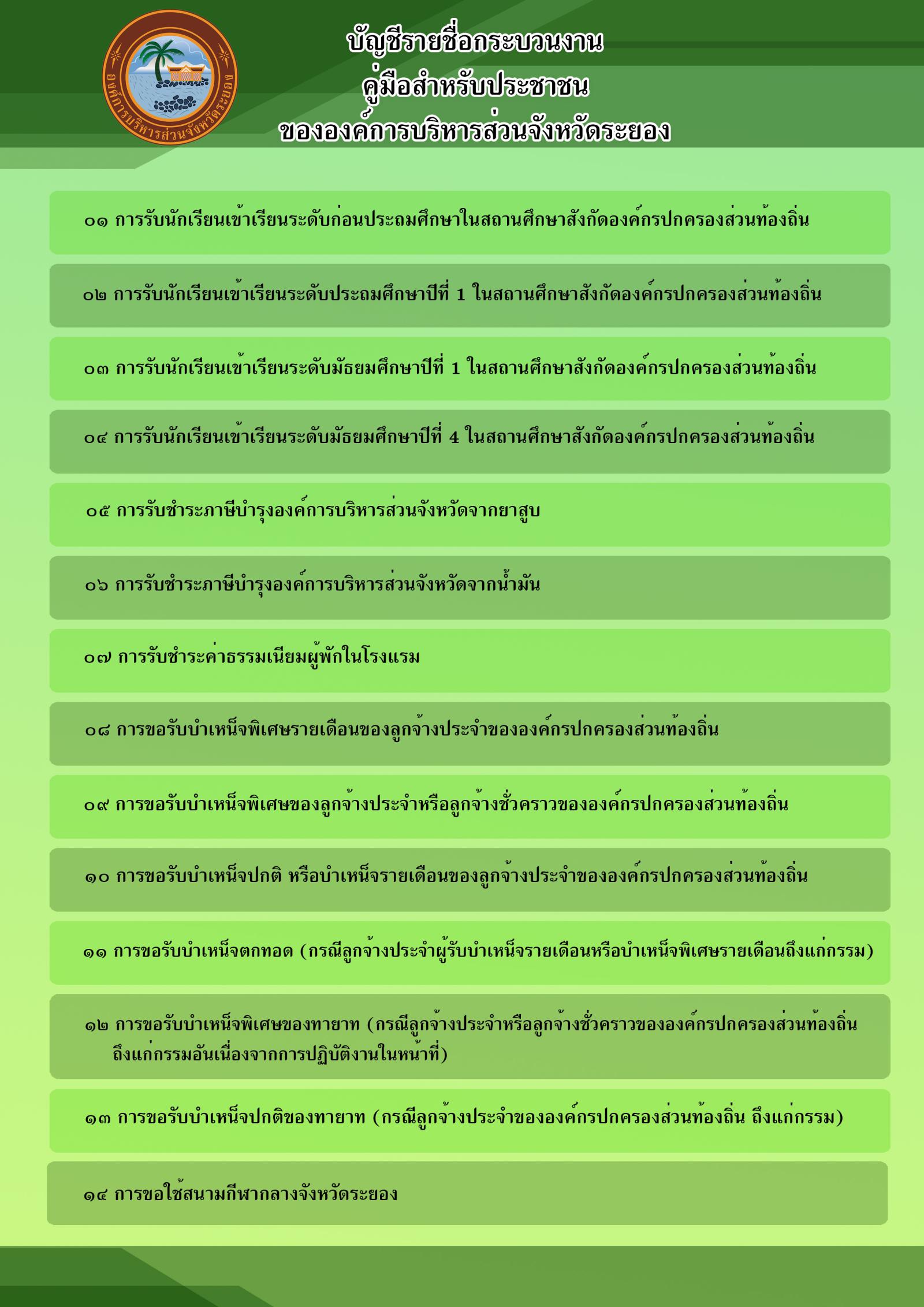 บัญชีรายชื่อกระบวนงานคู่มือสำหรับประชาชนขององค์การบริหารส่วนจังหวัดระยอง