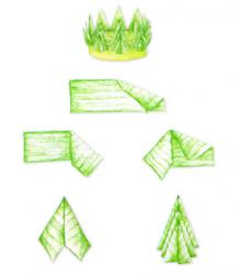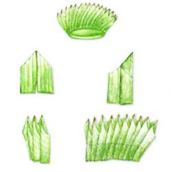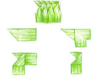 2. พับตามรูป จำนวน 3 กลีบ จากนั้นนำมาวางซ้อนให้ลดหลั่นกันไปตามภาพ ซึ่งจะนับเป็น 1 ตับ